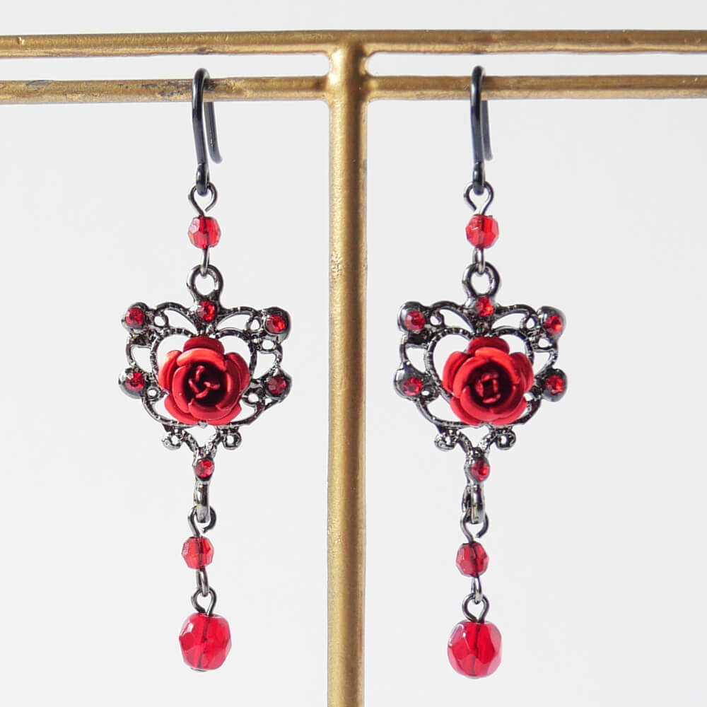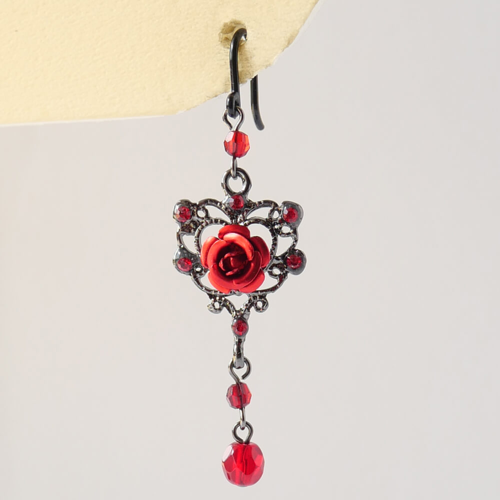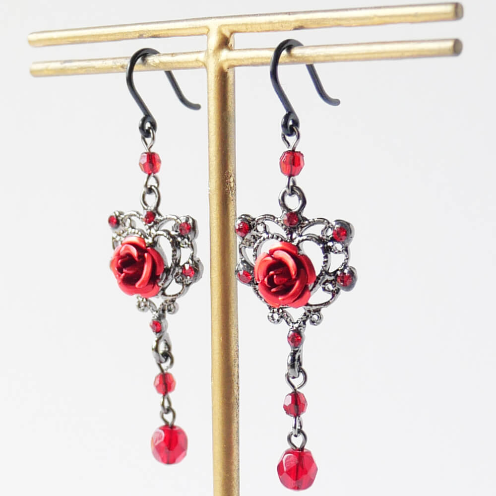 樹脂ポスト ゴスロリ 薔薇 ゴスハート ピアス ブランド