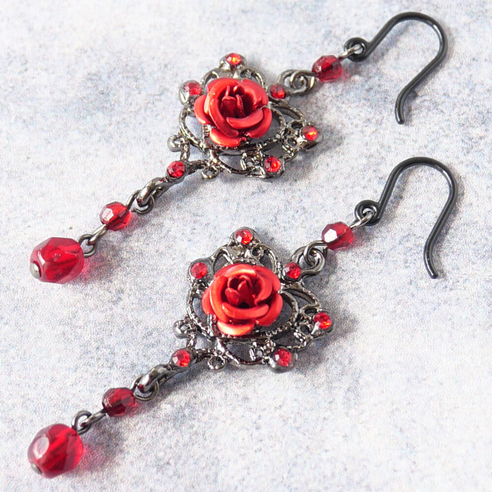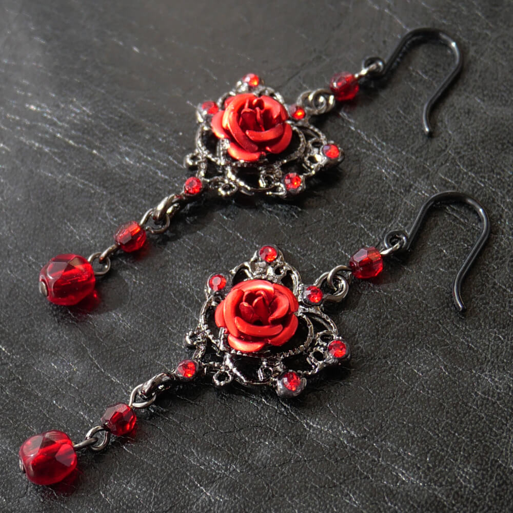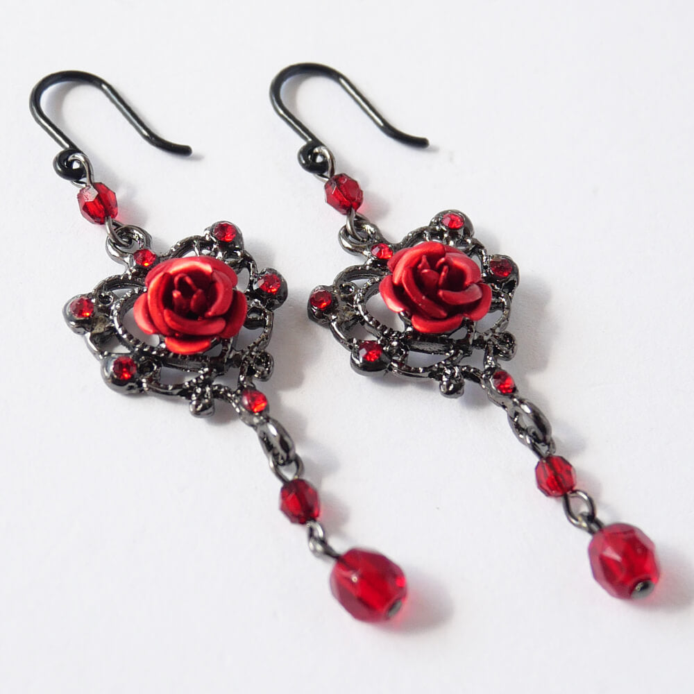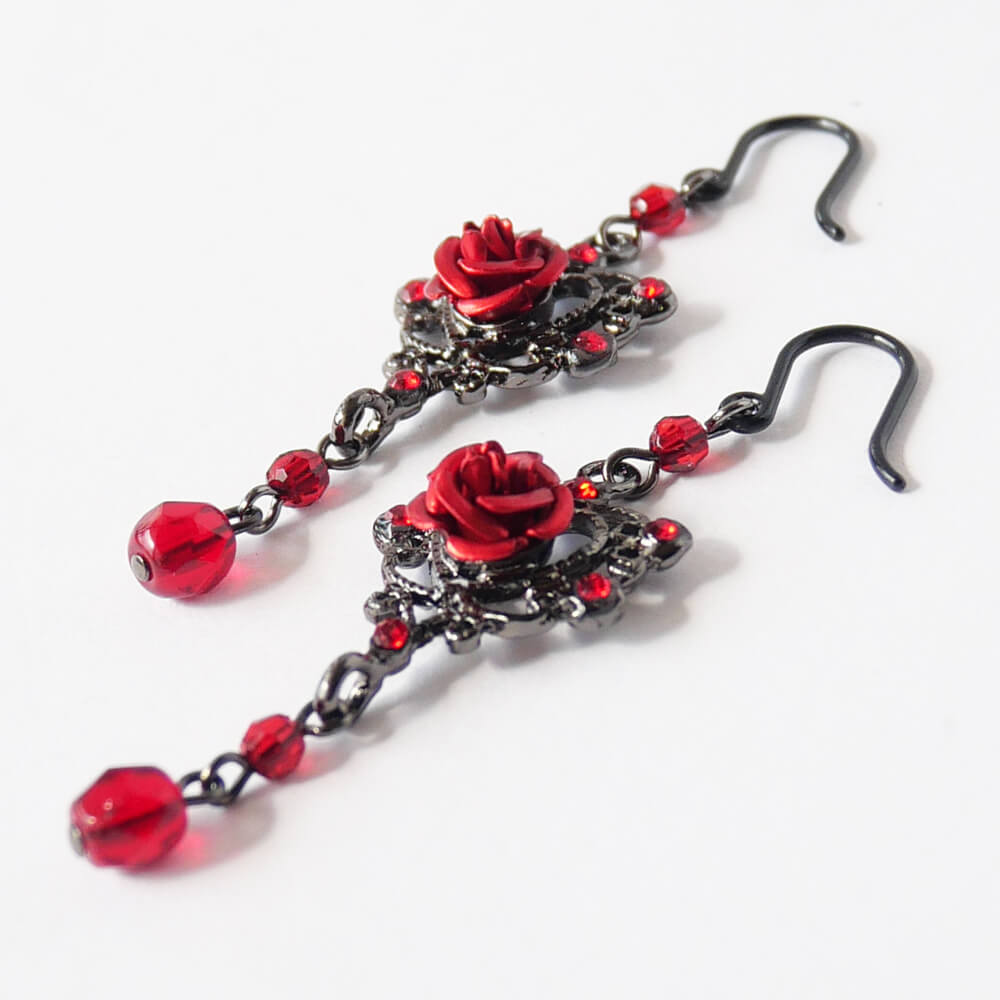 樹脂ポスト ゴスロリ 薔薇 ゴスハート ピアス ブランド