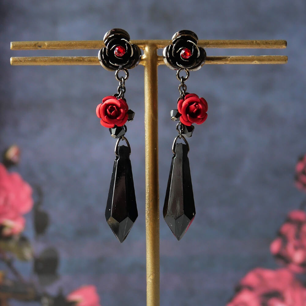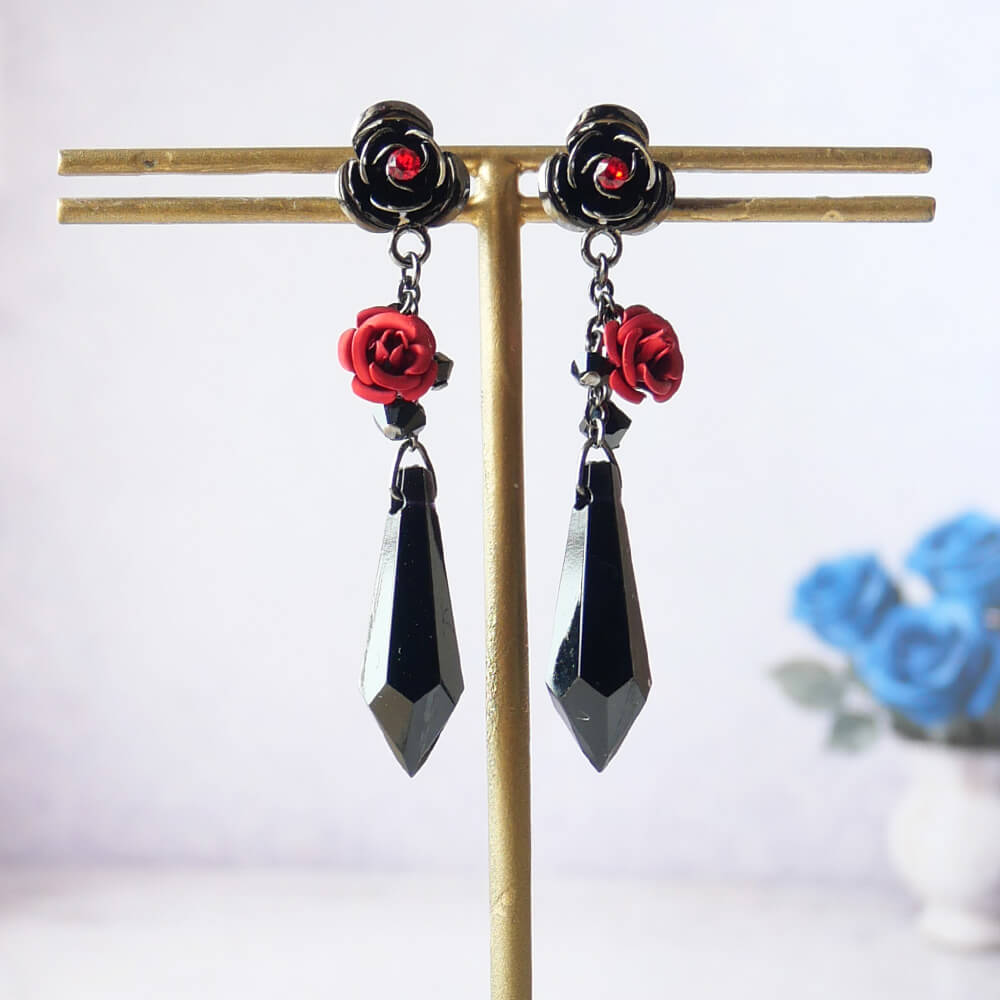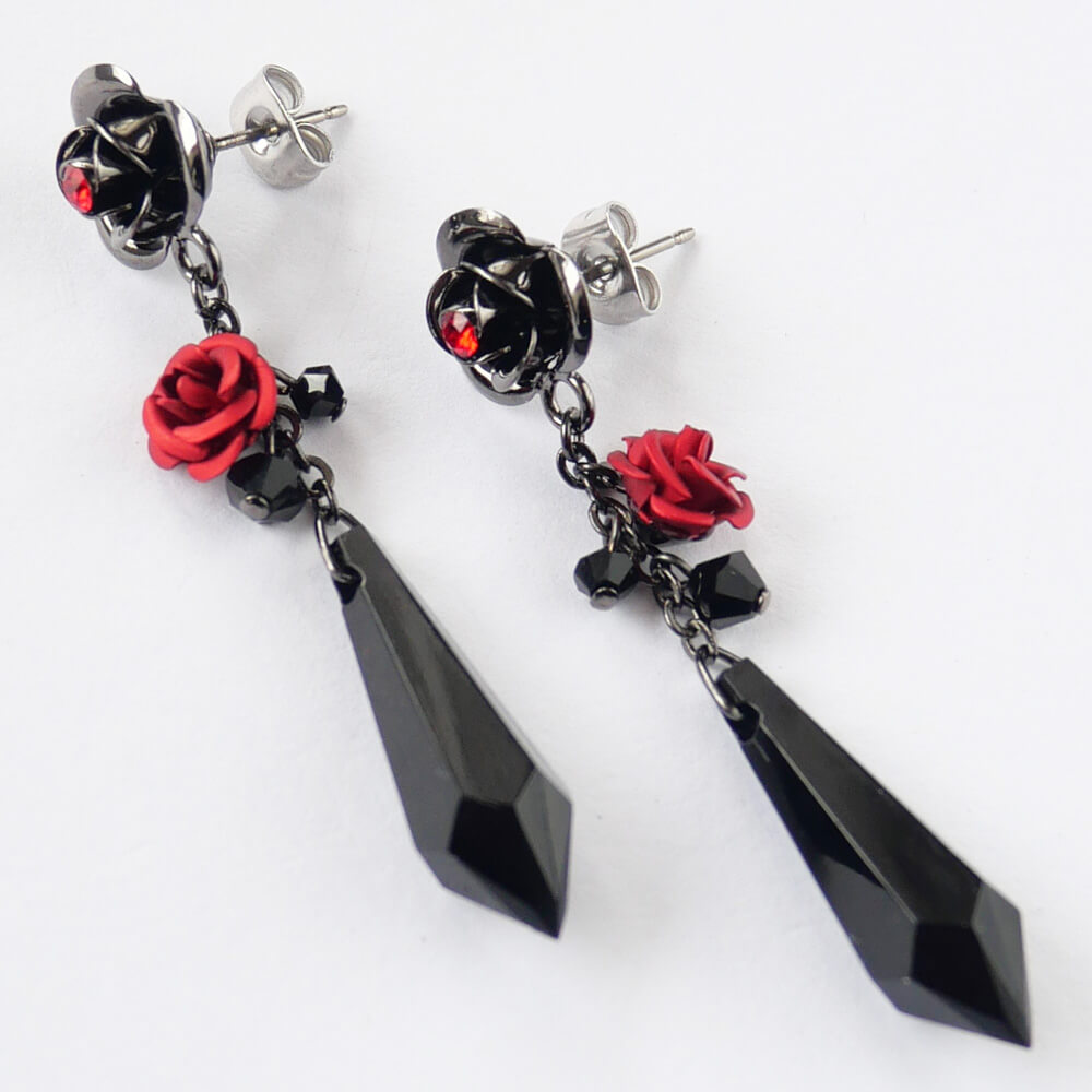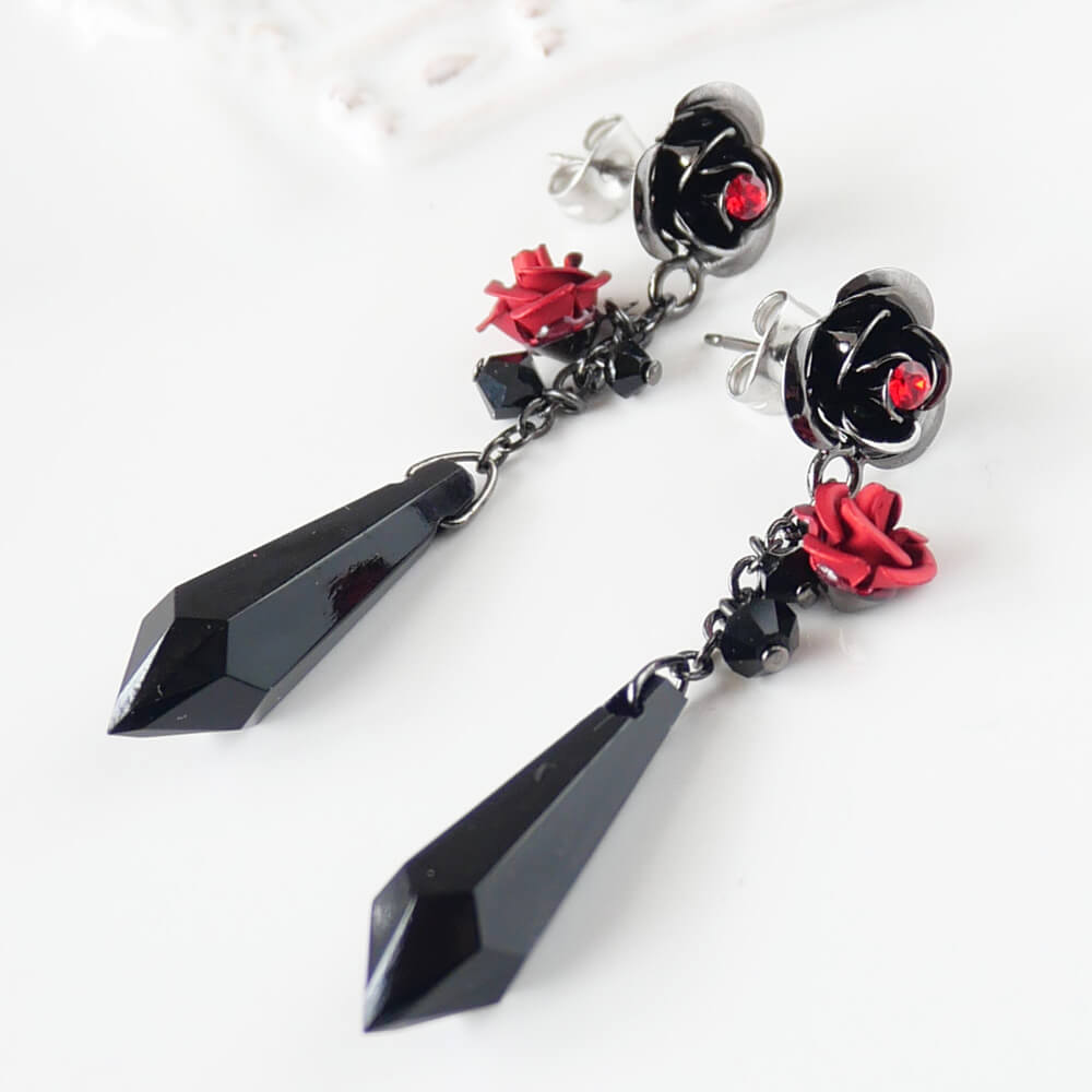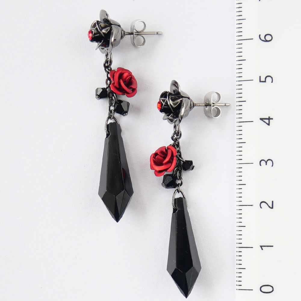 赤薔薇 ロング ピアス ブラックストーン ゴシック ゴスロリ バラ