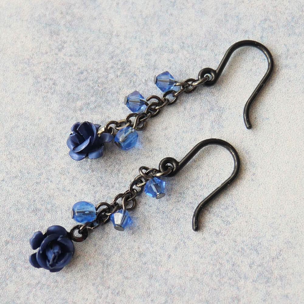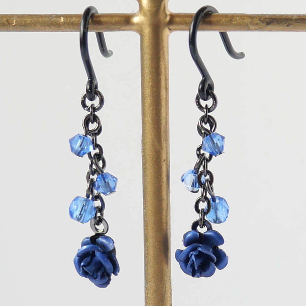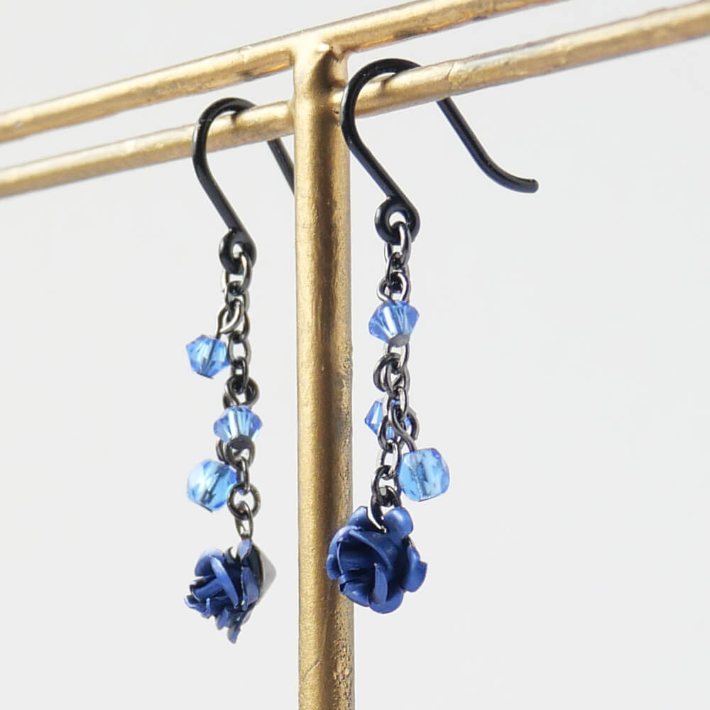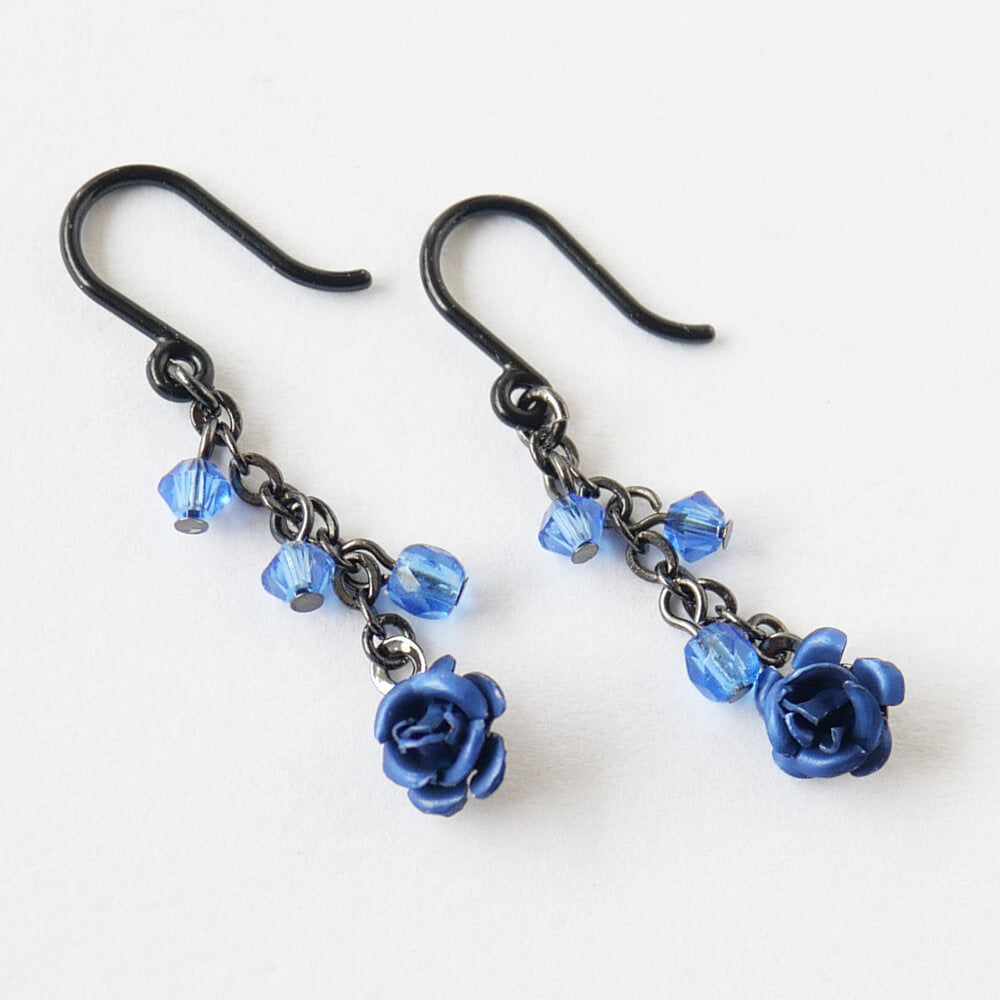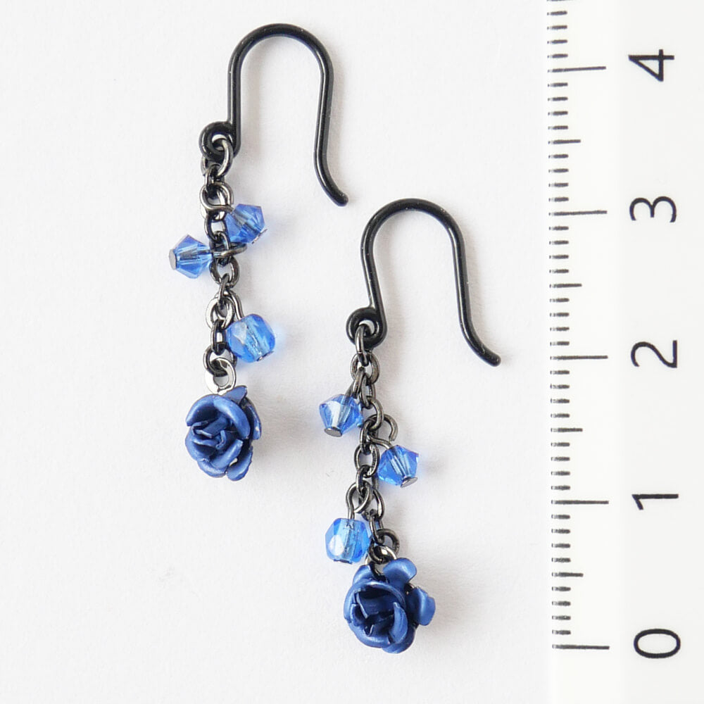 【ノンアレルギー】ガンメタ 青薔薇 mini ブルー ローズ ピアス