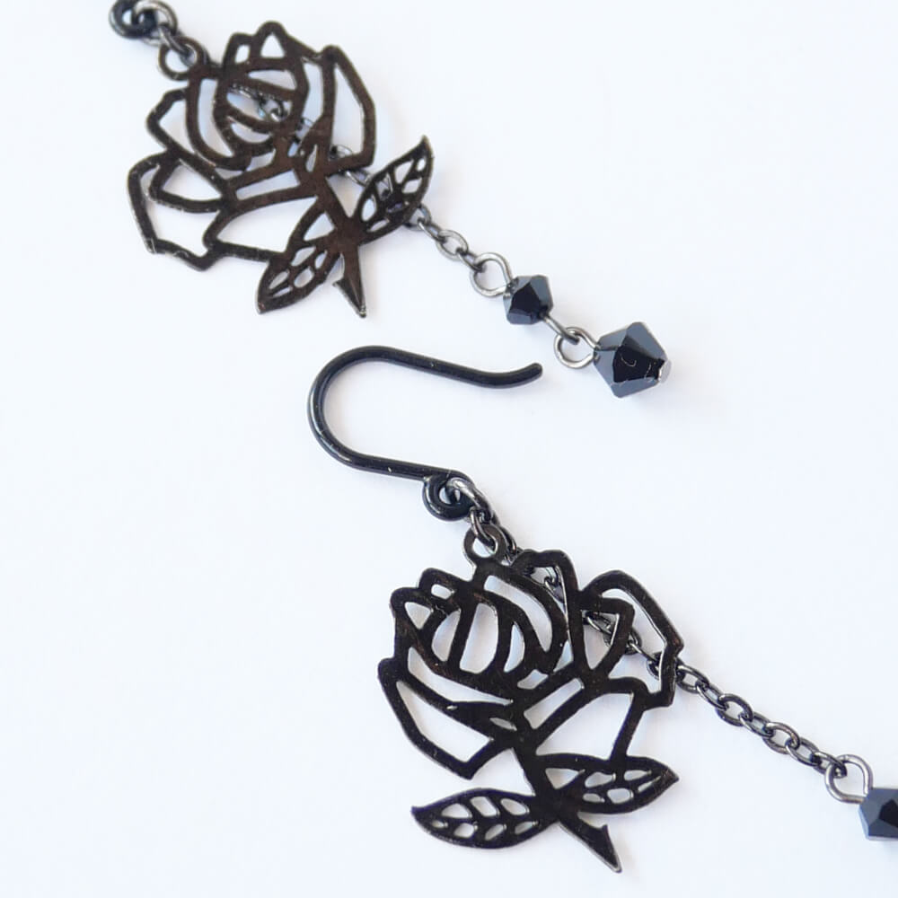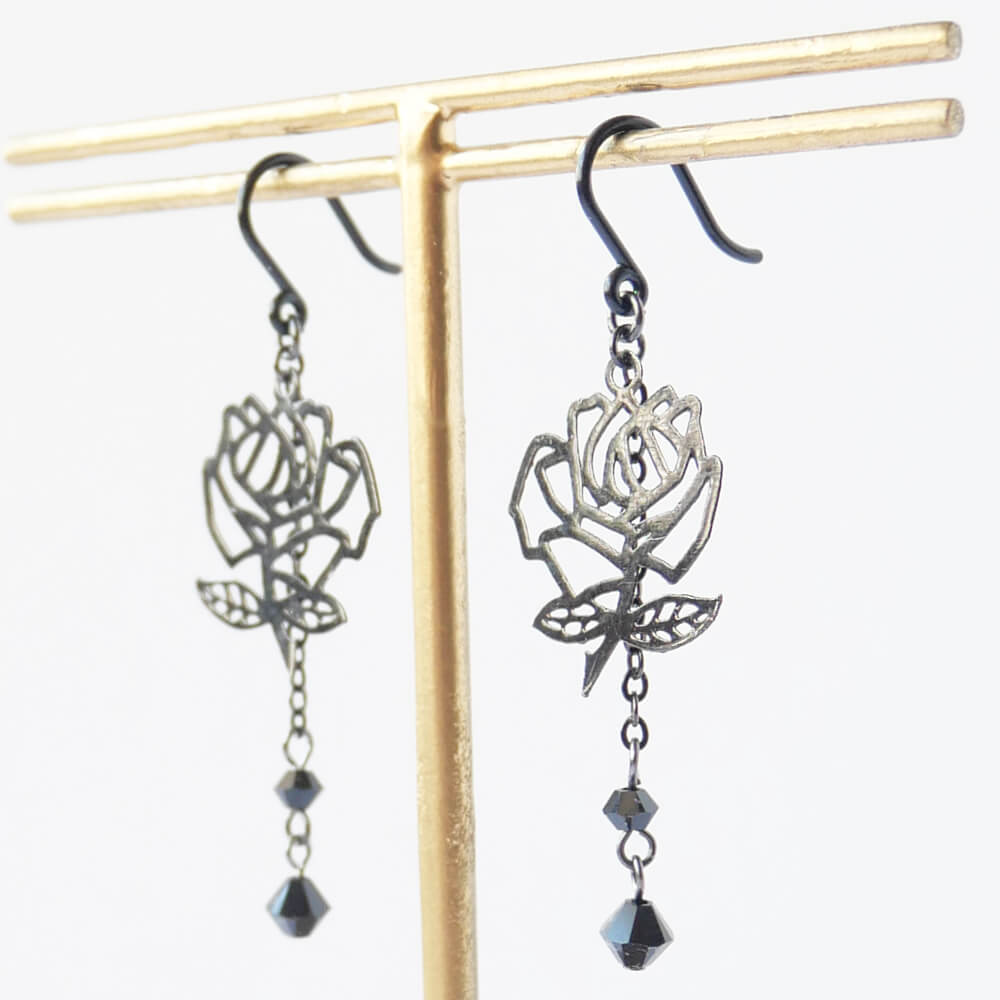 【樹脂ポスト】ガンメタ ステンド ローズ 薔薇 ピアス