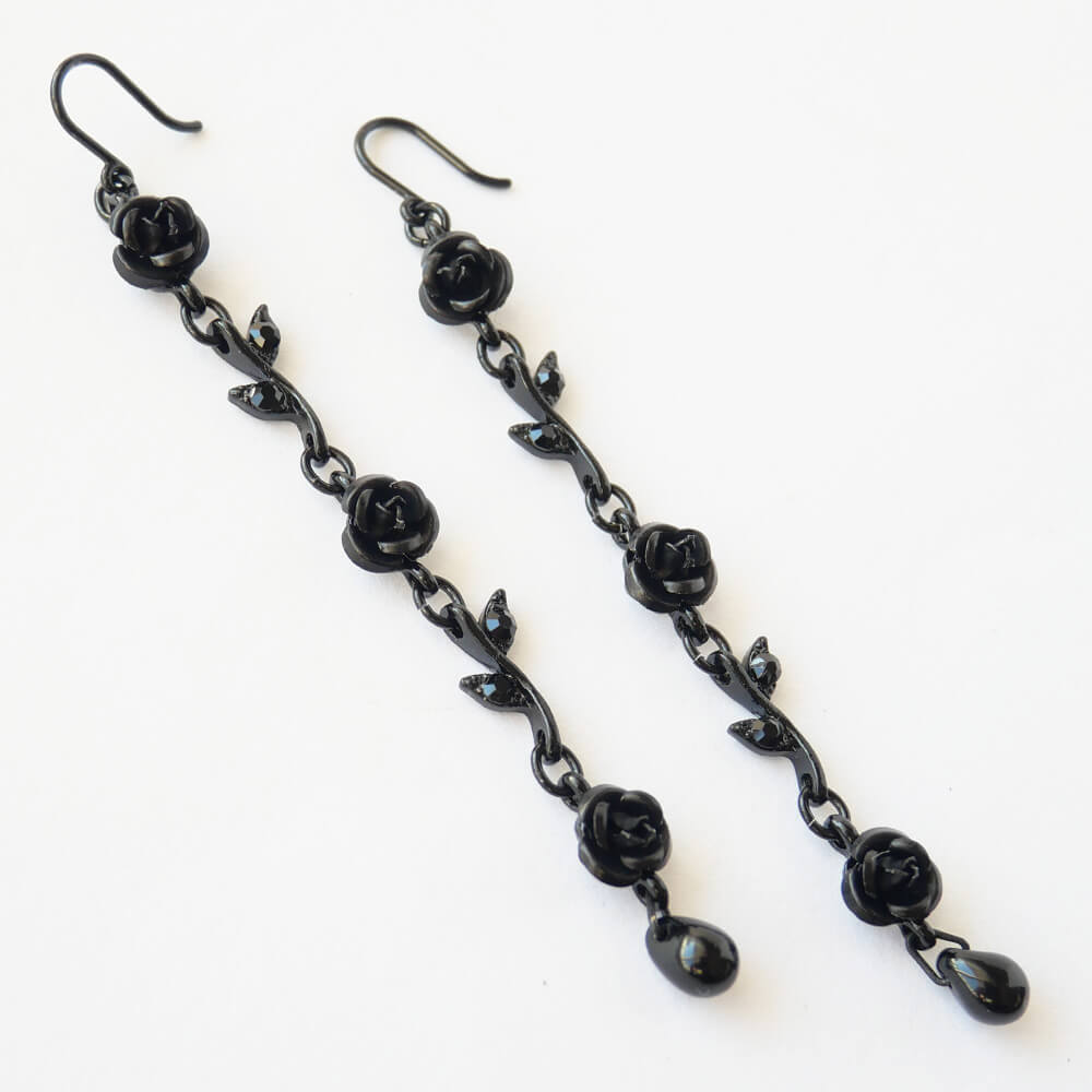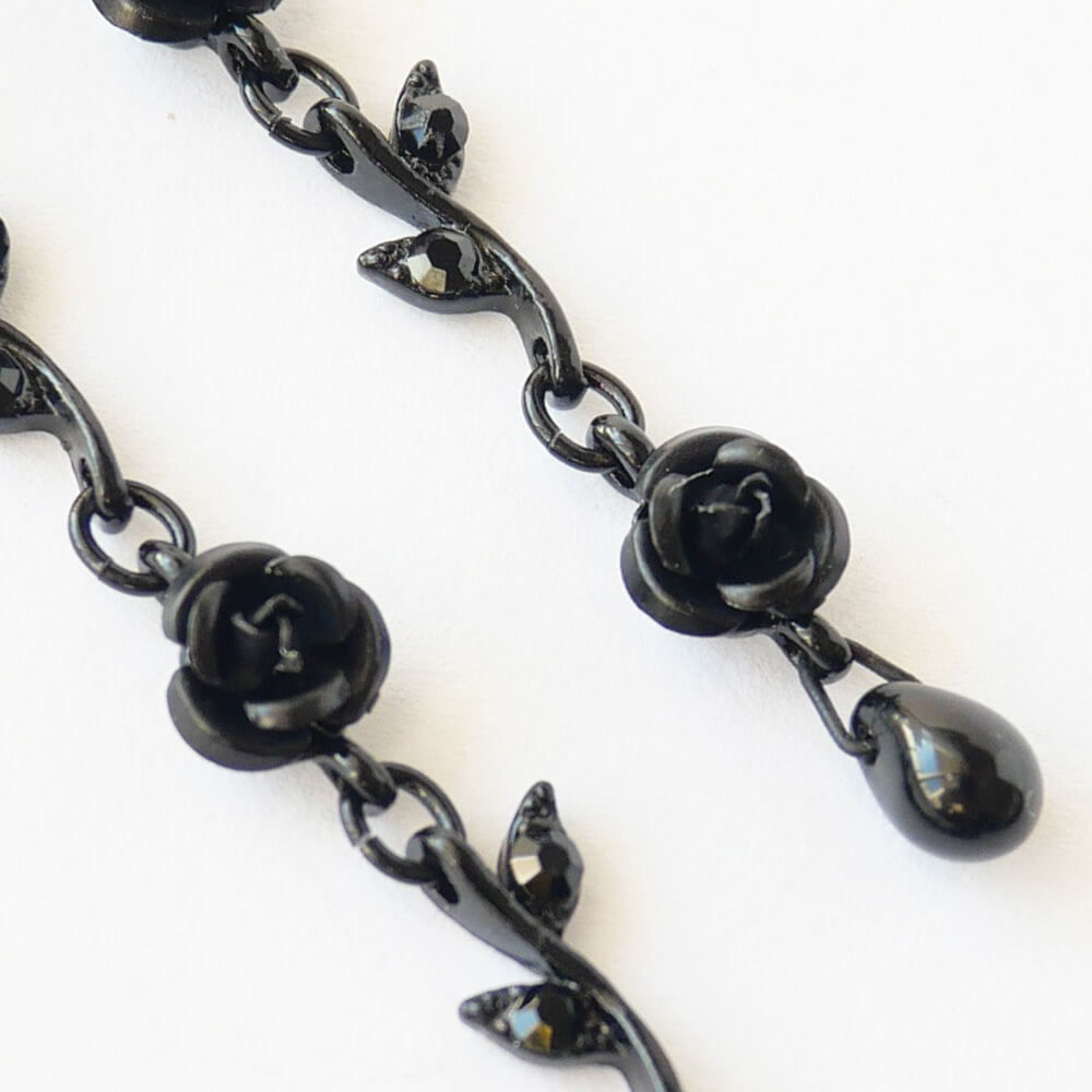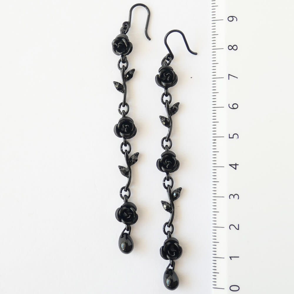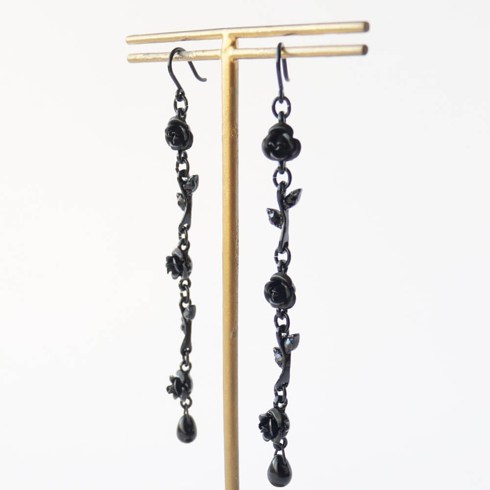 黒薔薇をイメージしたエレガントなデザインが特徴のロングピアス