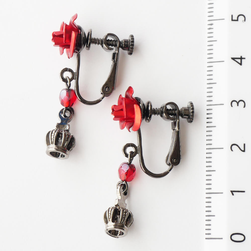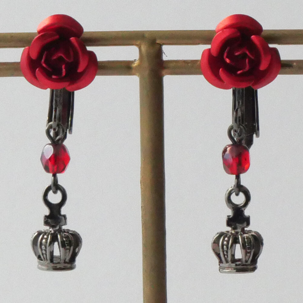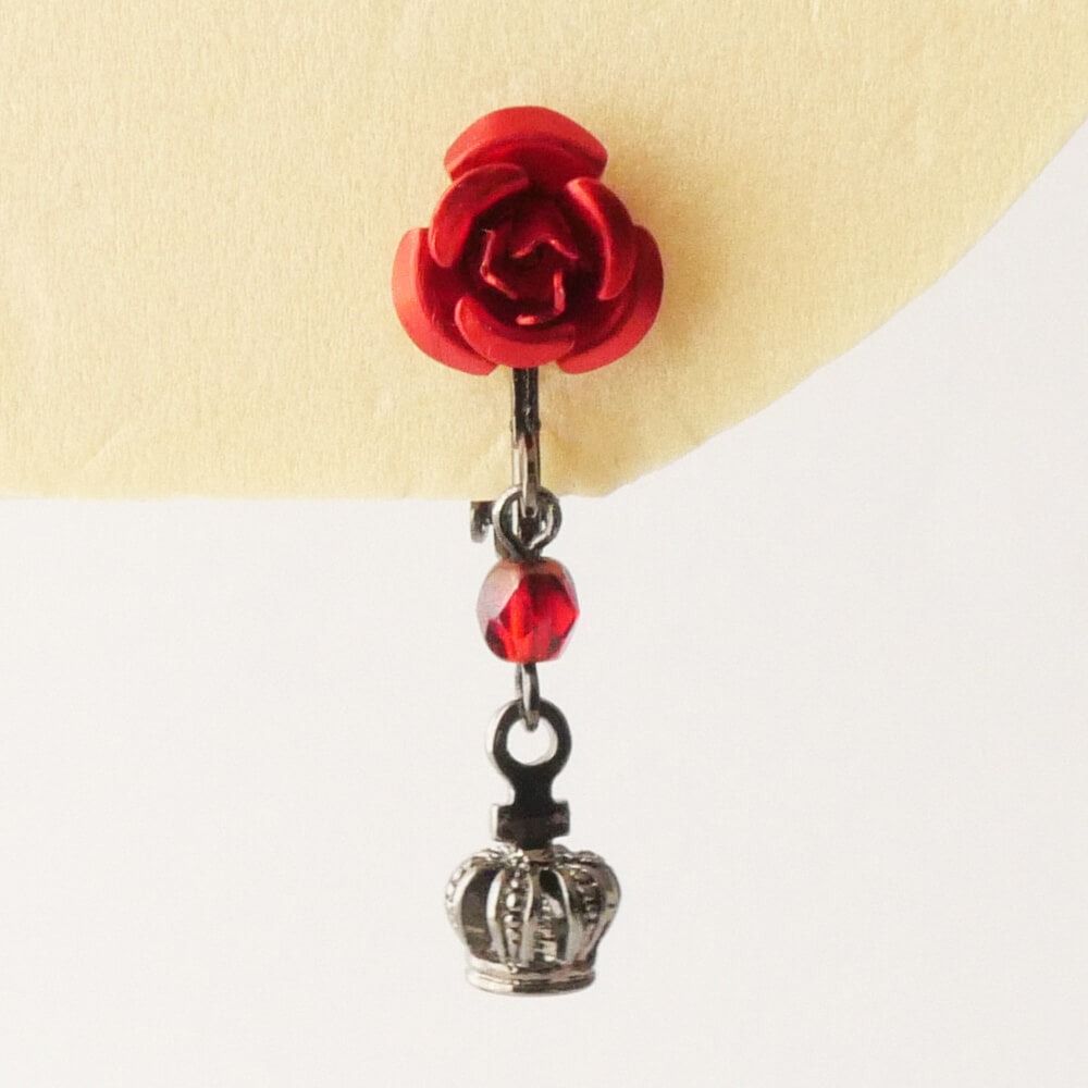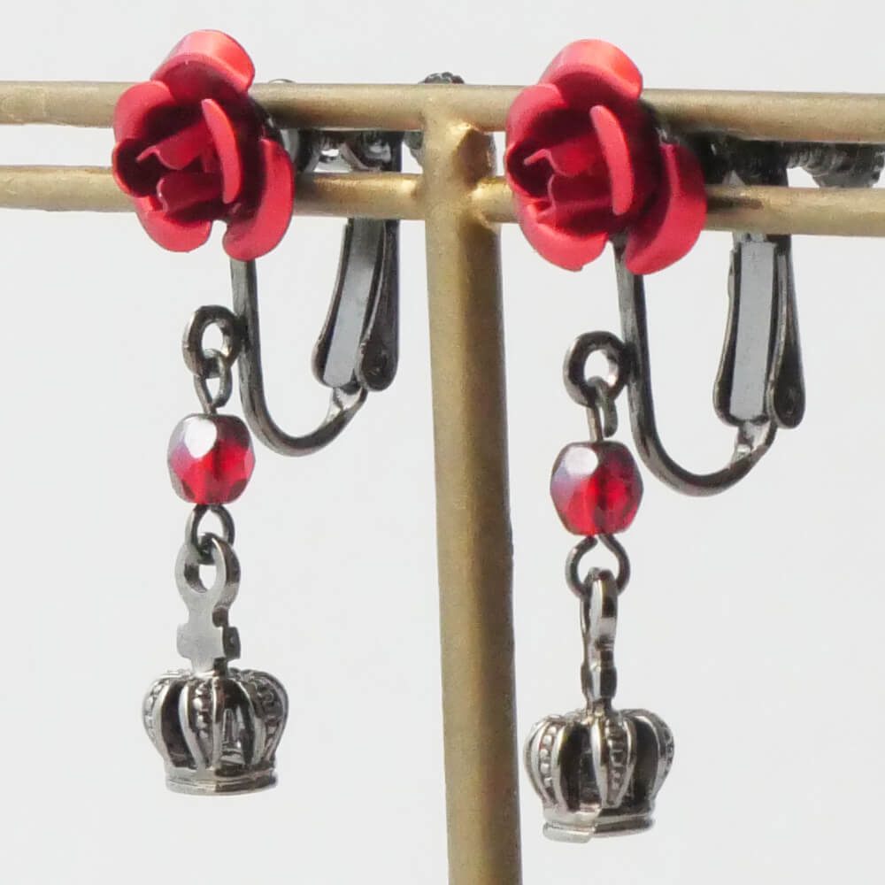【ローズガーデン】赤薔薇 王冠 レッドローズ クラウン イヤリング