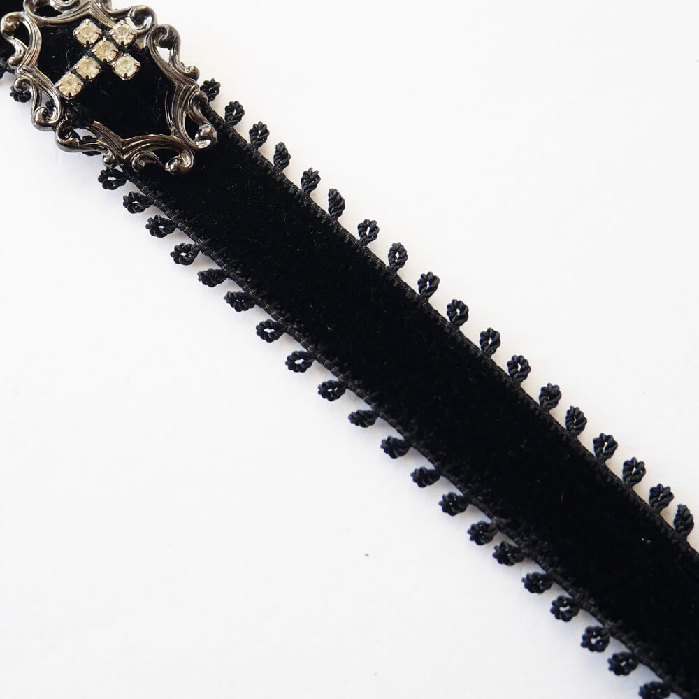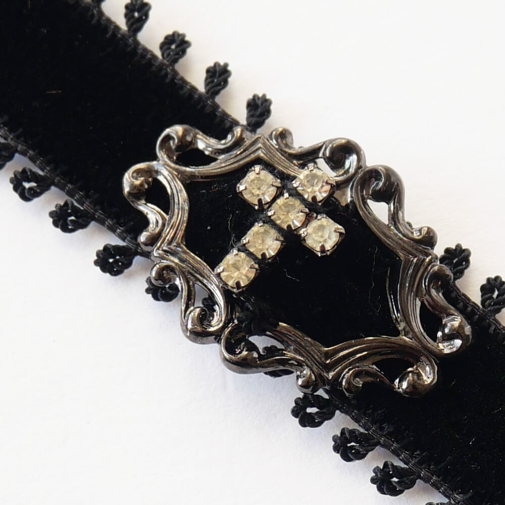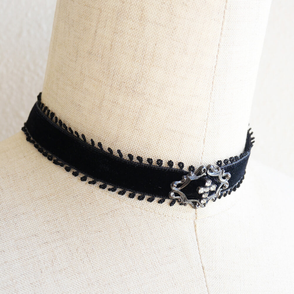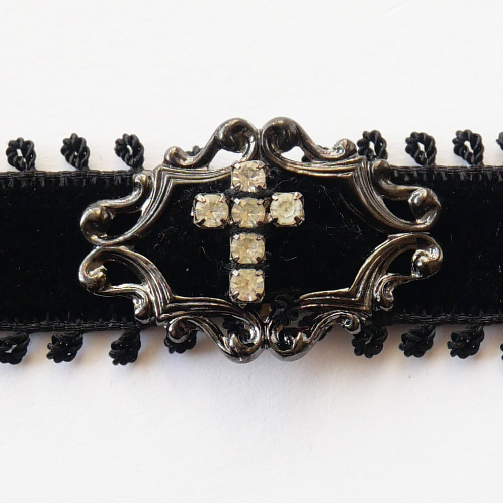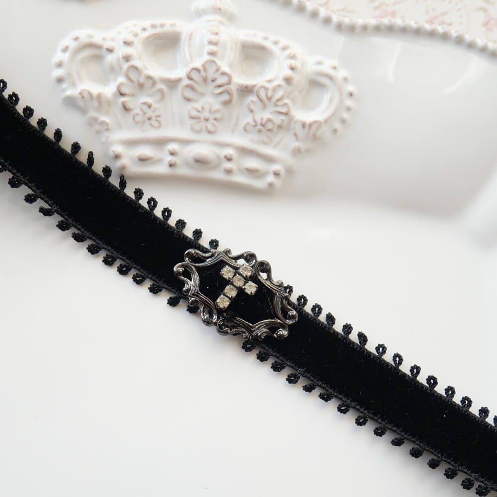 クリスタル ストーン クロス ブラック ベルベット シンプル チョーカー