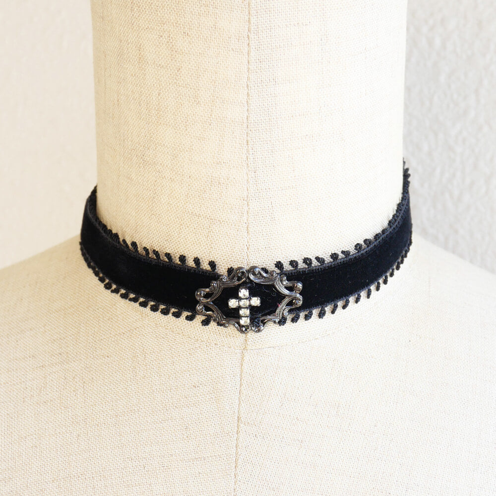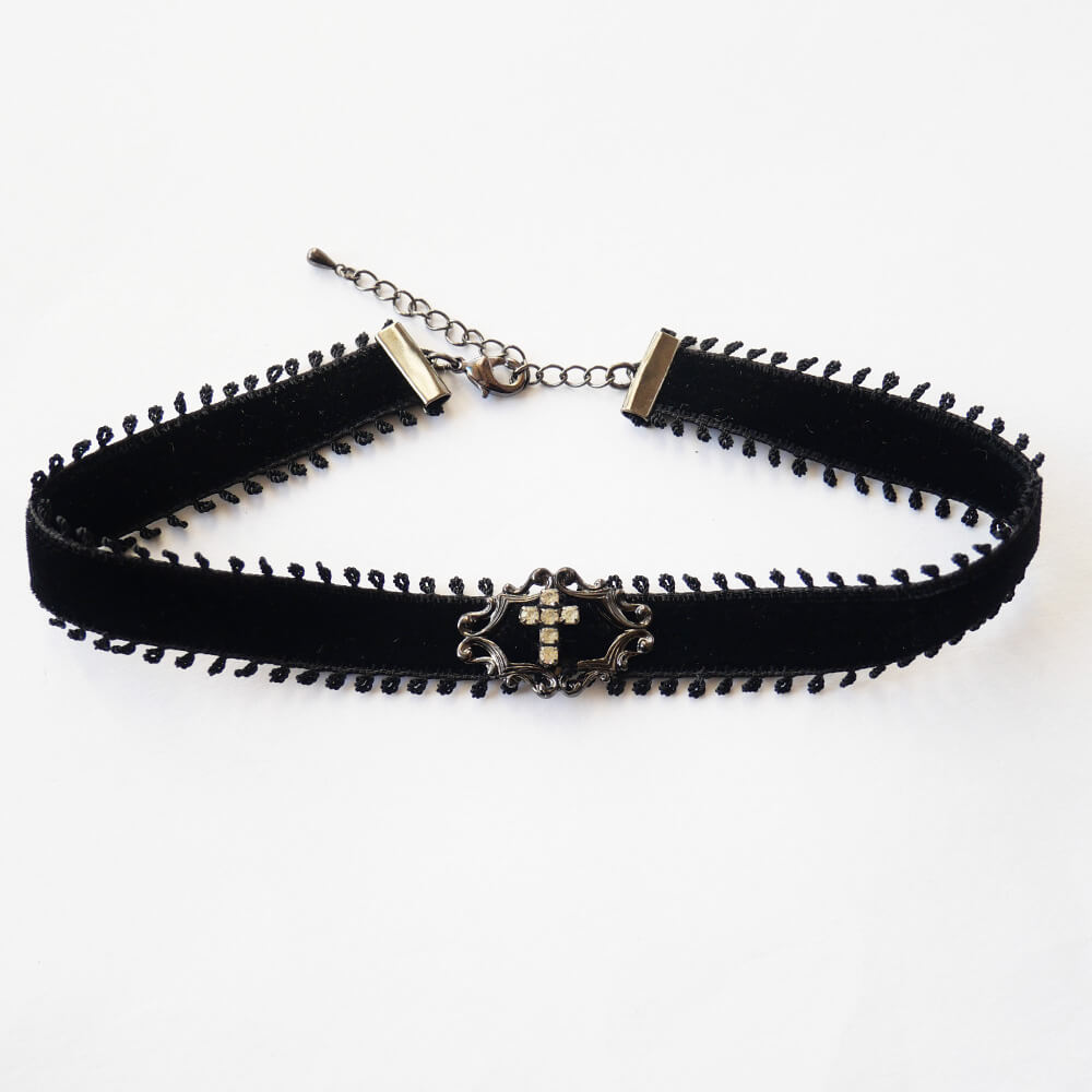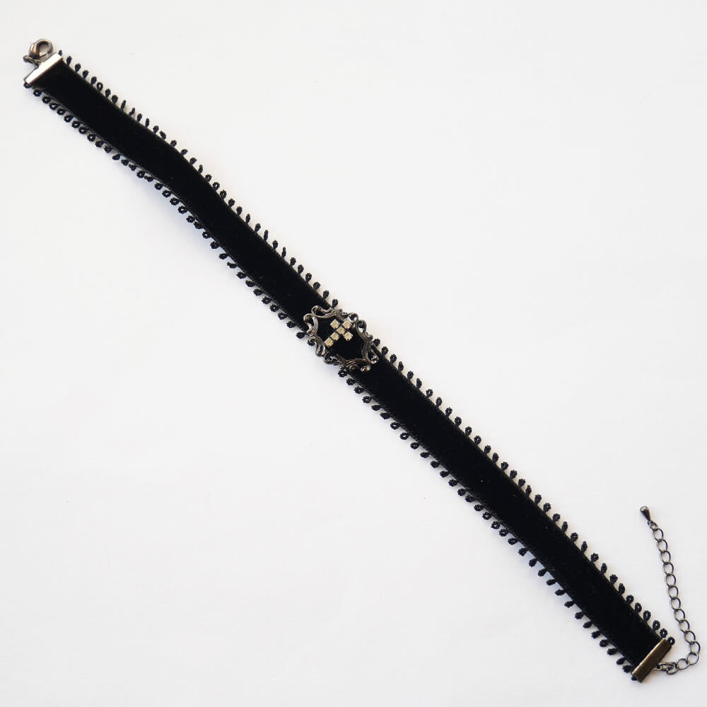 ラインストーンの十字架がワンポイントのシンプルチョーカー