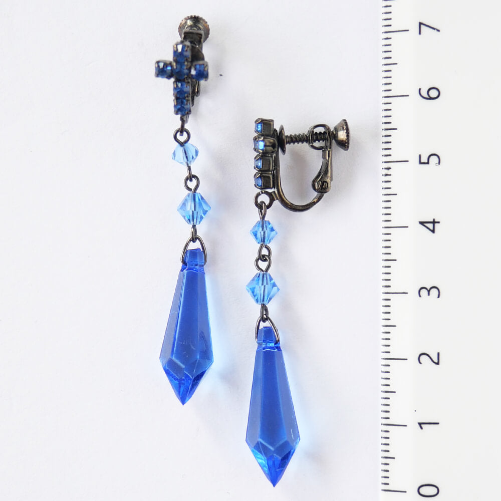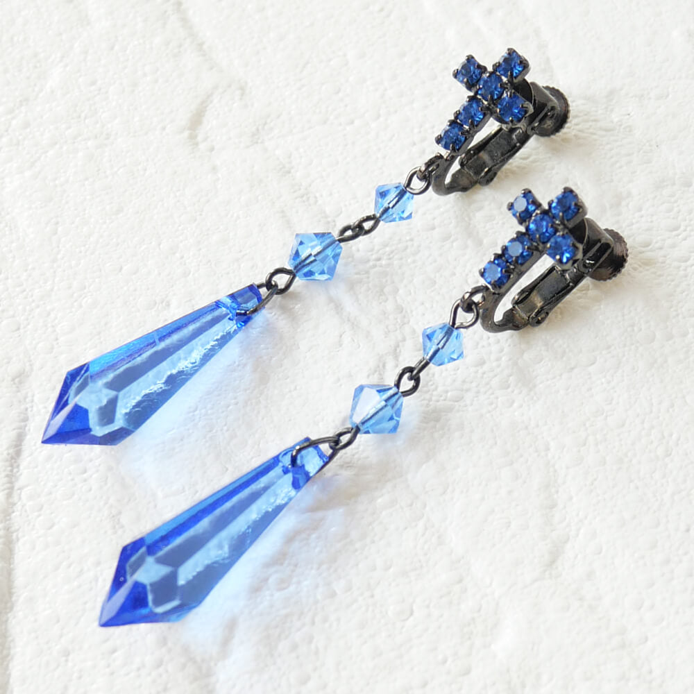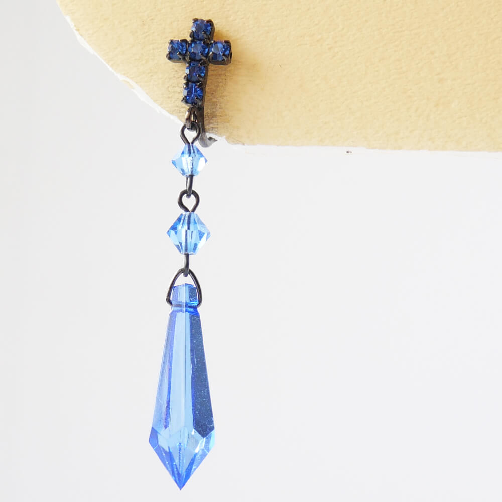 イヤリング クロス ゴスロリ ブルー カットパーツ ラインストーン 十字架