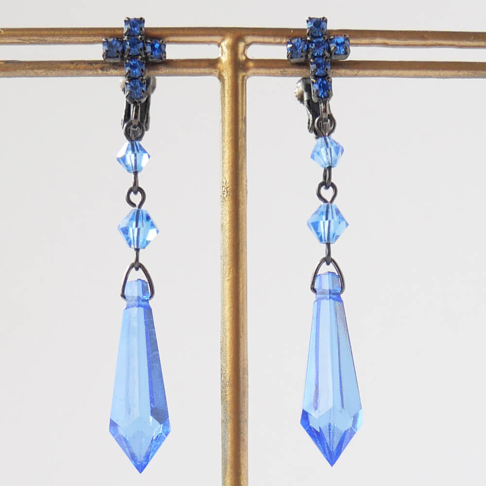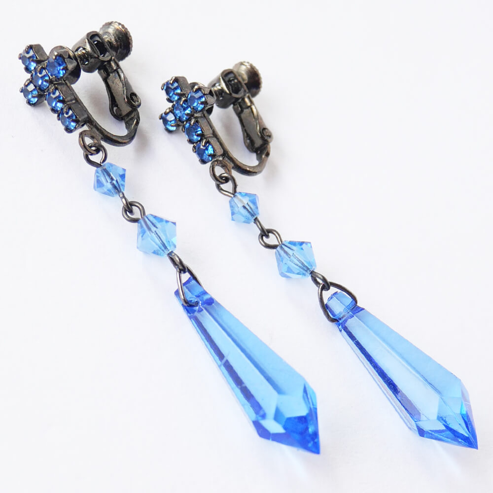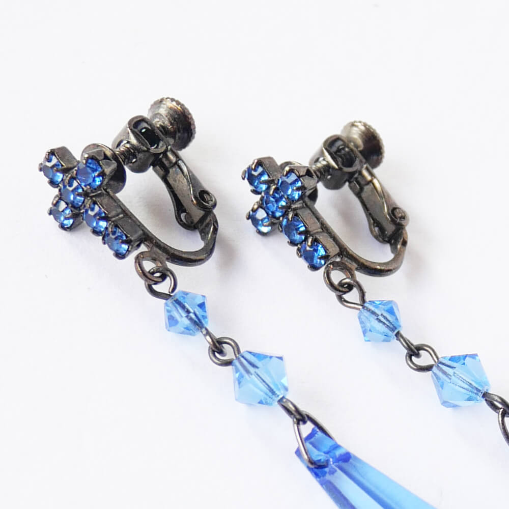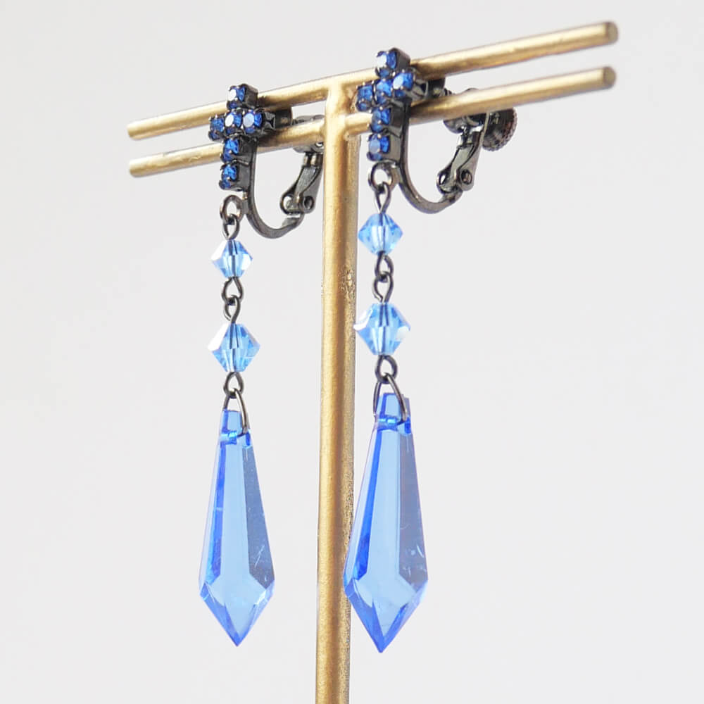 イヤリング クロス ゴスロリ ブルー カットパーツ ラインストーン 十字架