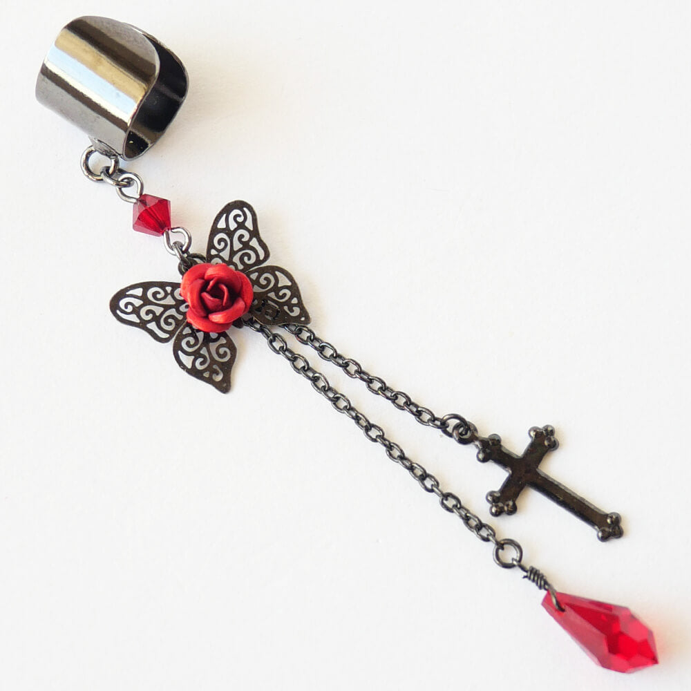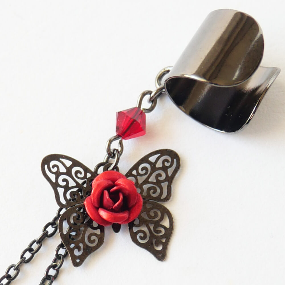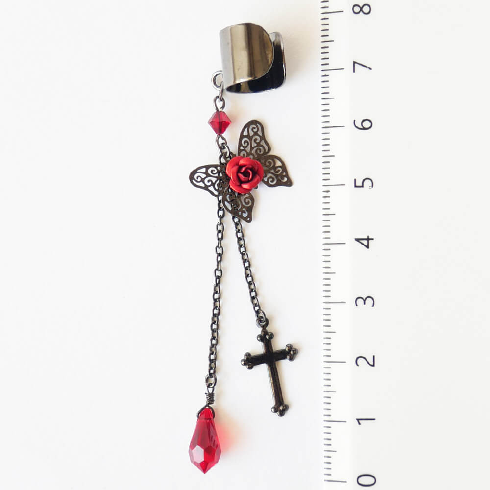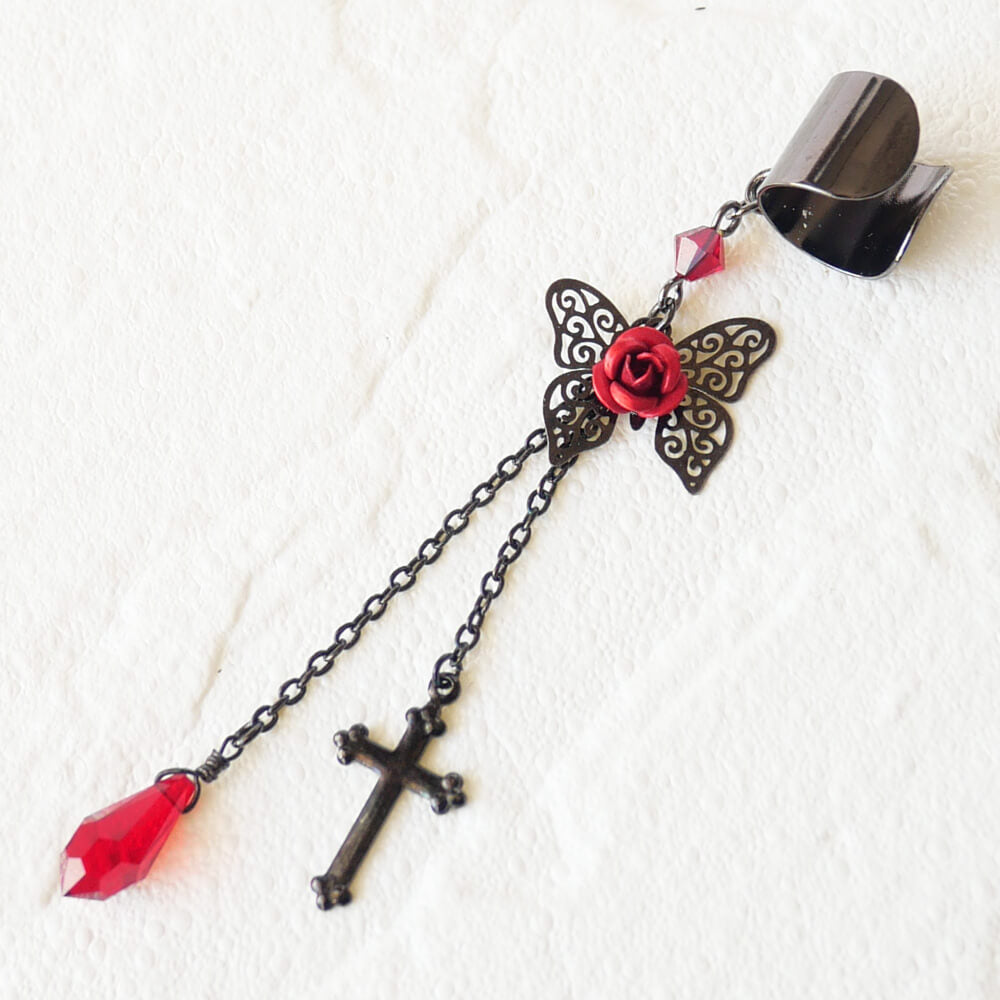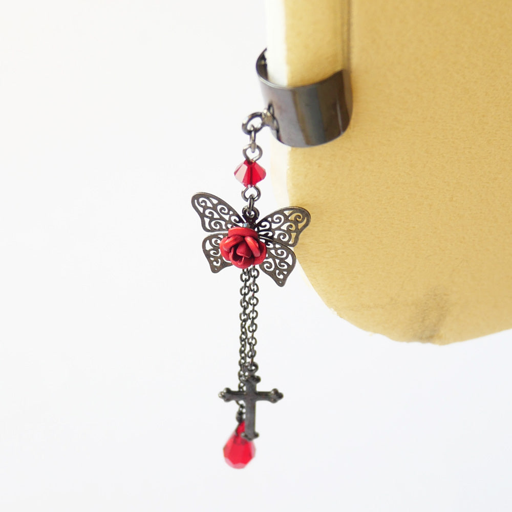 イヤーカフ 蝶 バタフライ ステンド レッド ローズ ゴスロリ