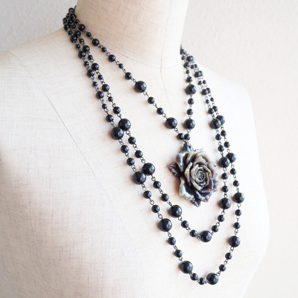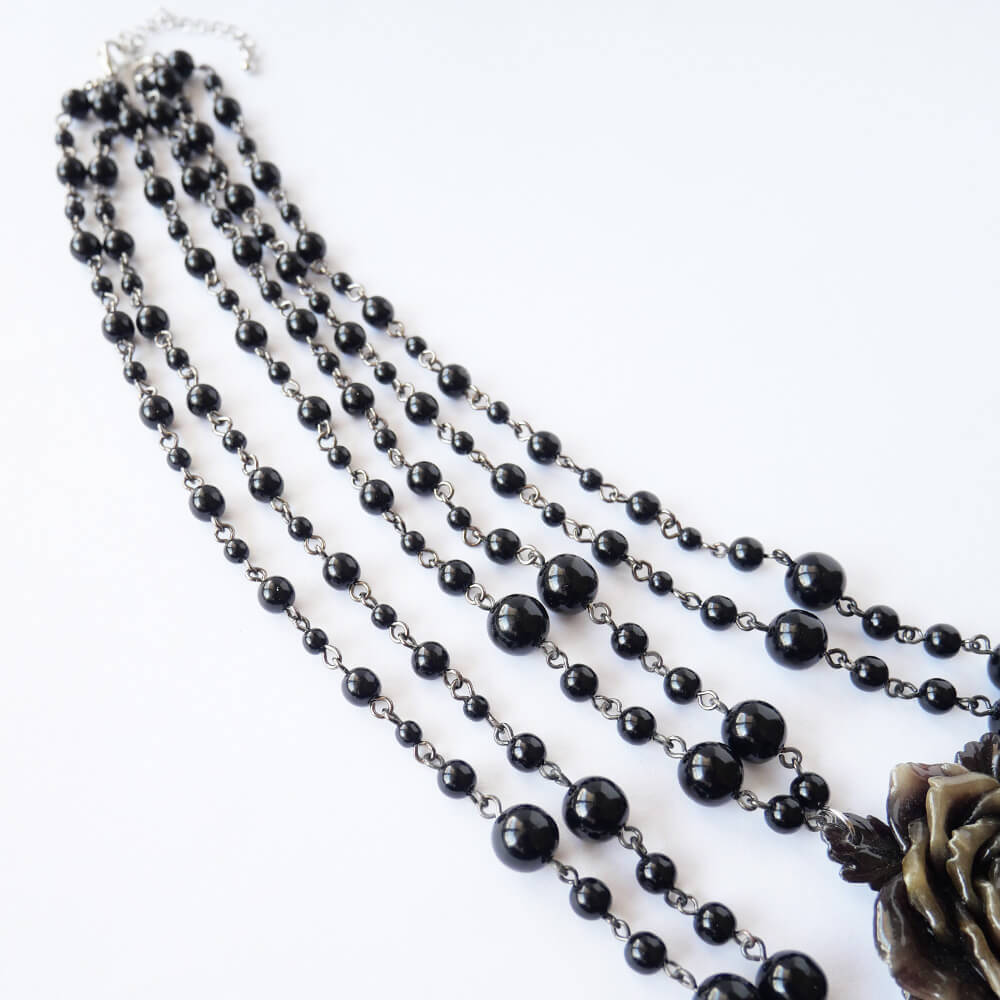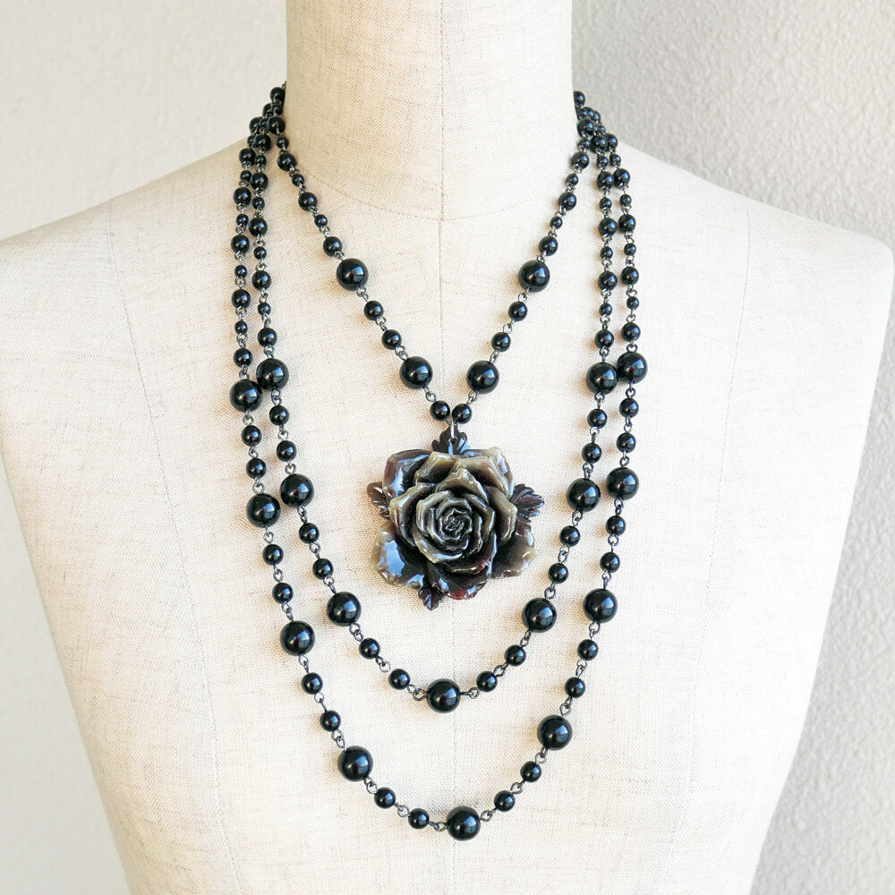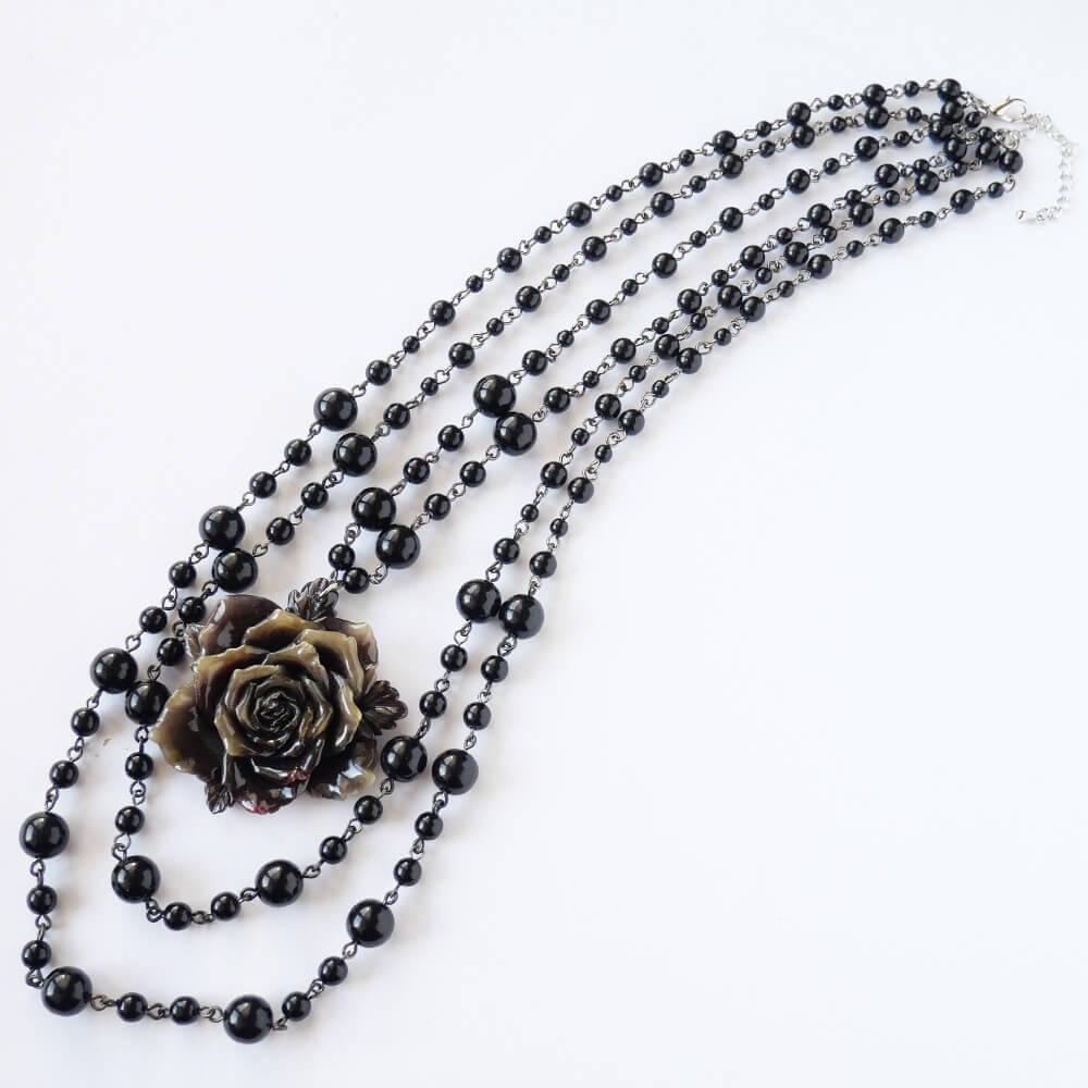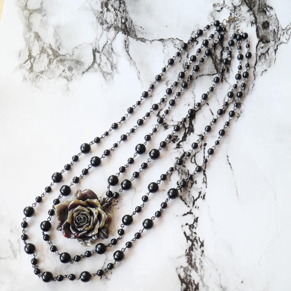 黒薔薇 ゴシック ブラック 3連ネックレス