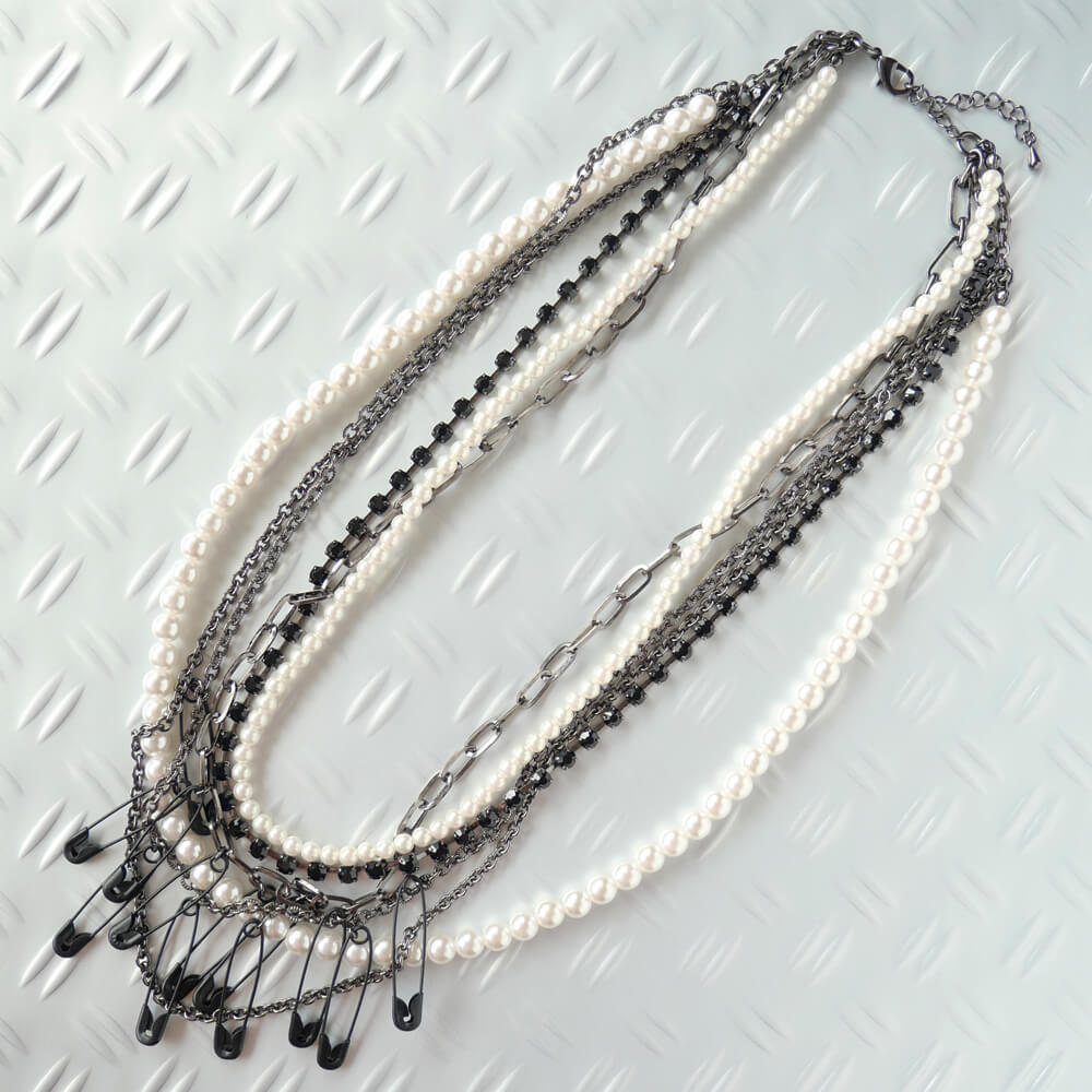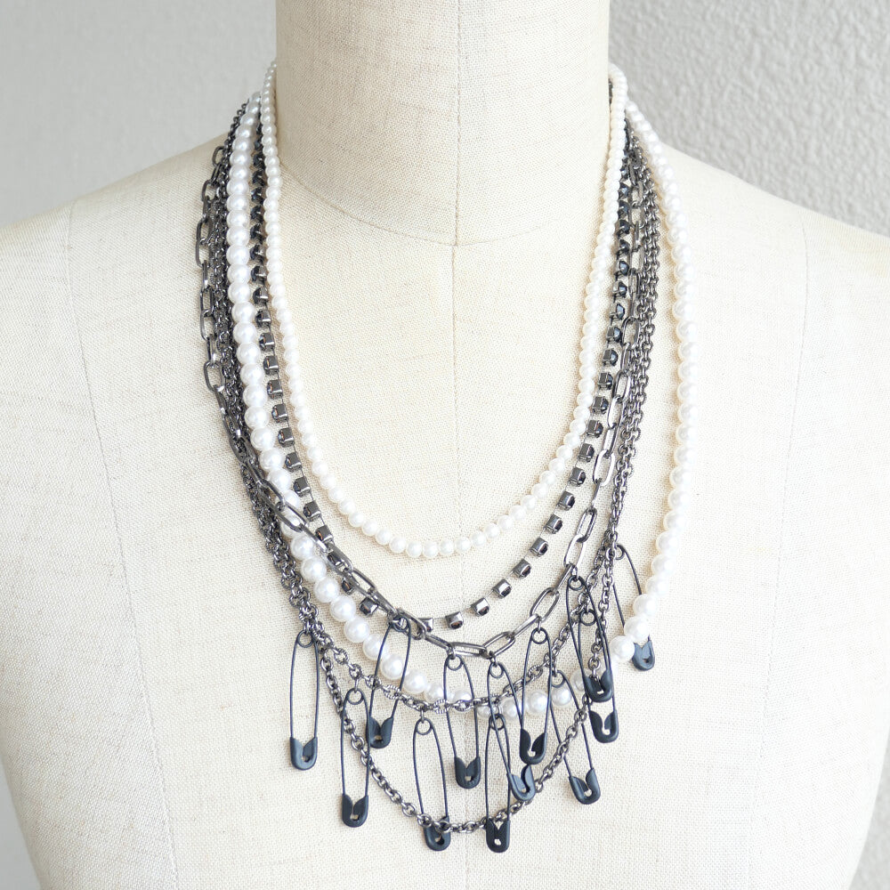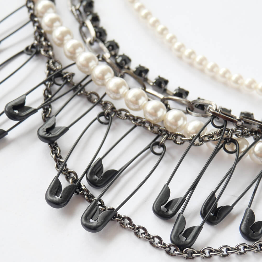 パンク メタル パール ガンメタ ネックレス 安全ピン