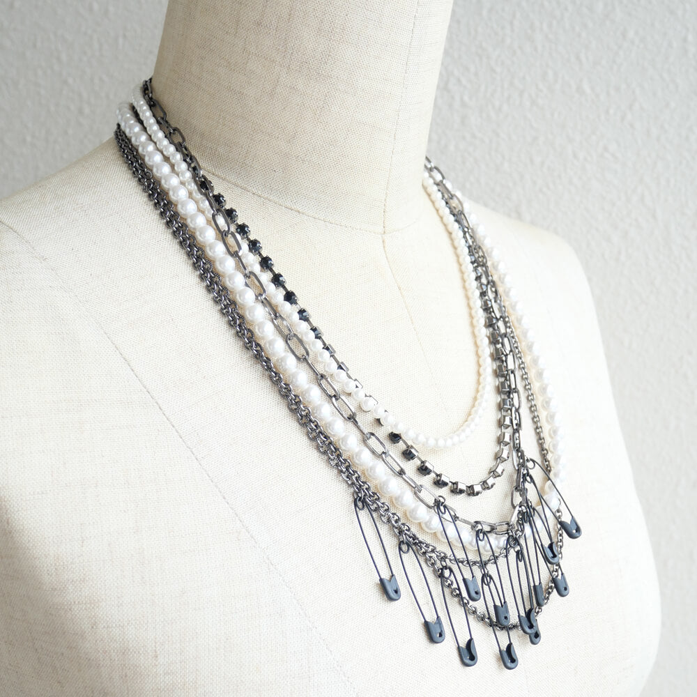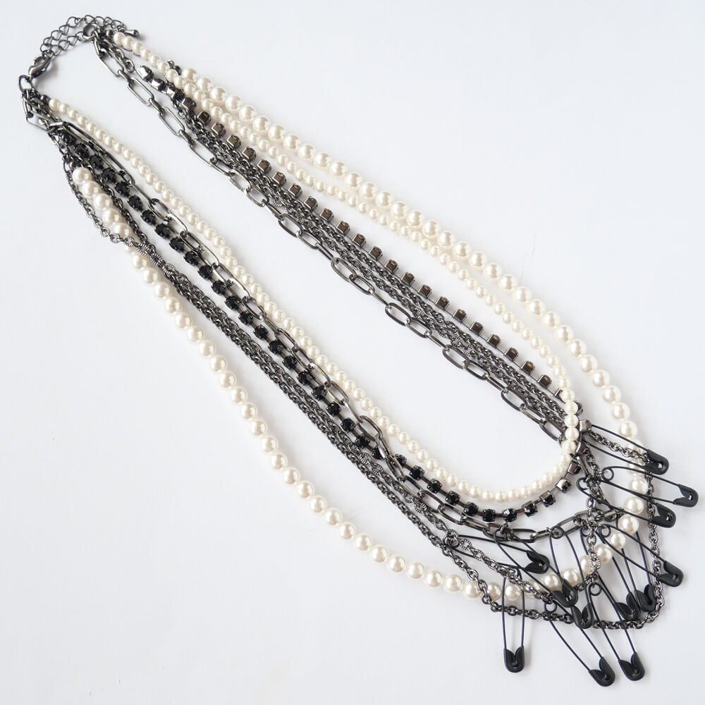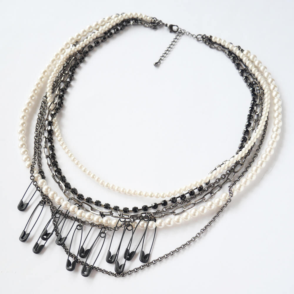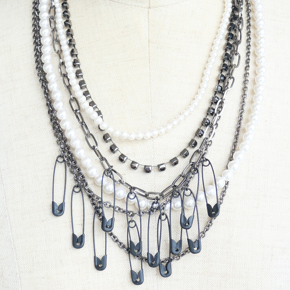 パンク メタル パール ガンメタ ネックレス 安全ピン