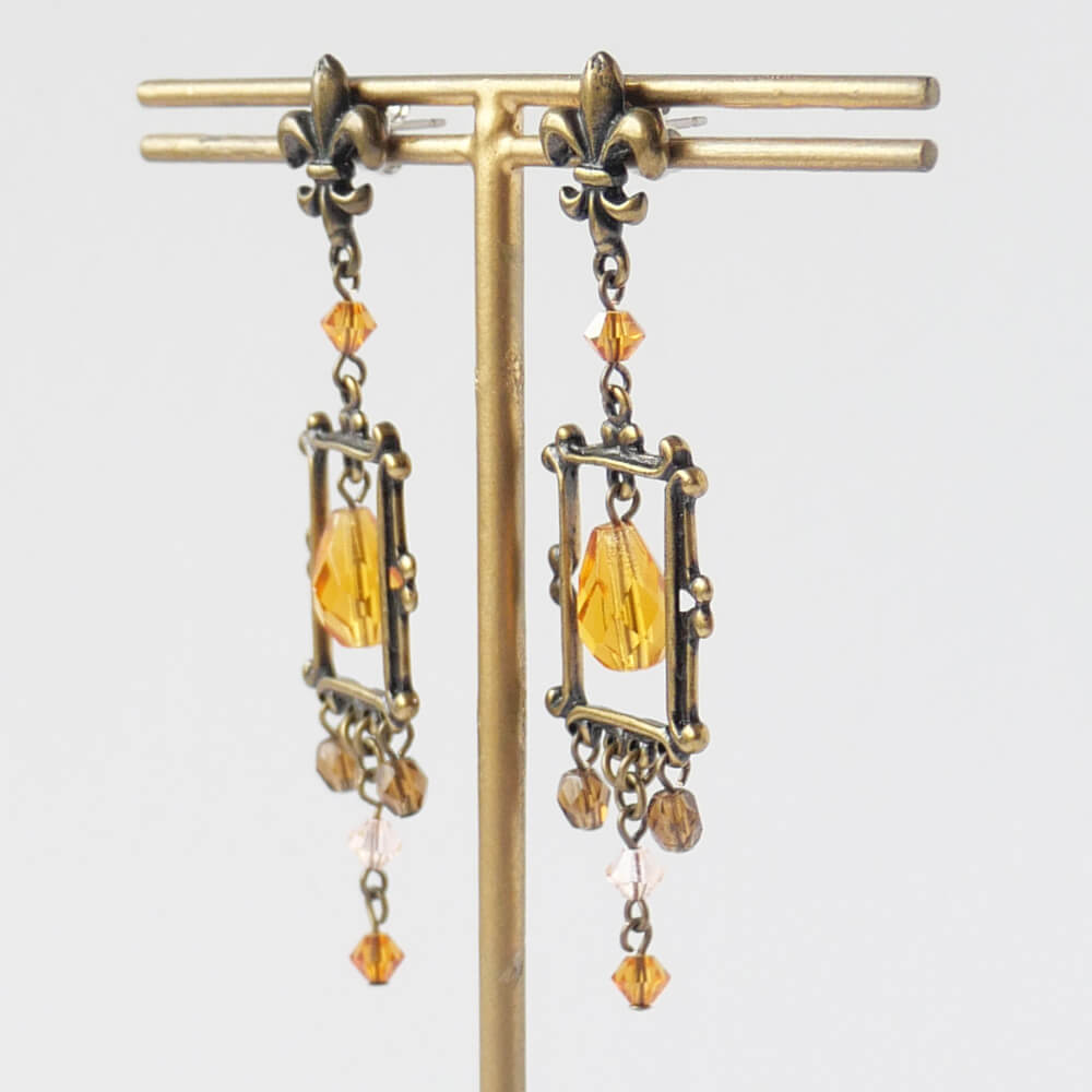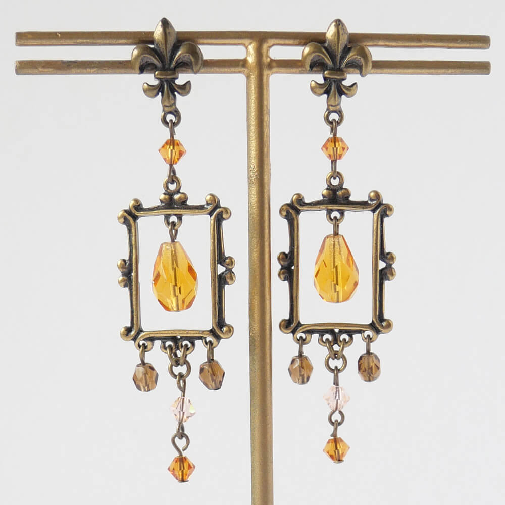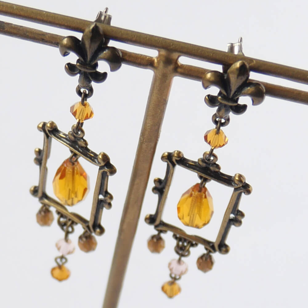 フレーム ピアス トパーズカラー チェコビーズ ゴスロリ 額縁