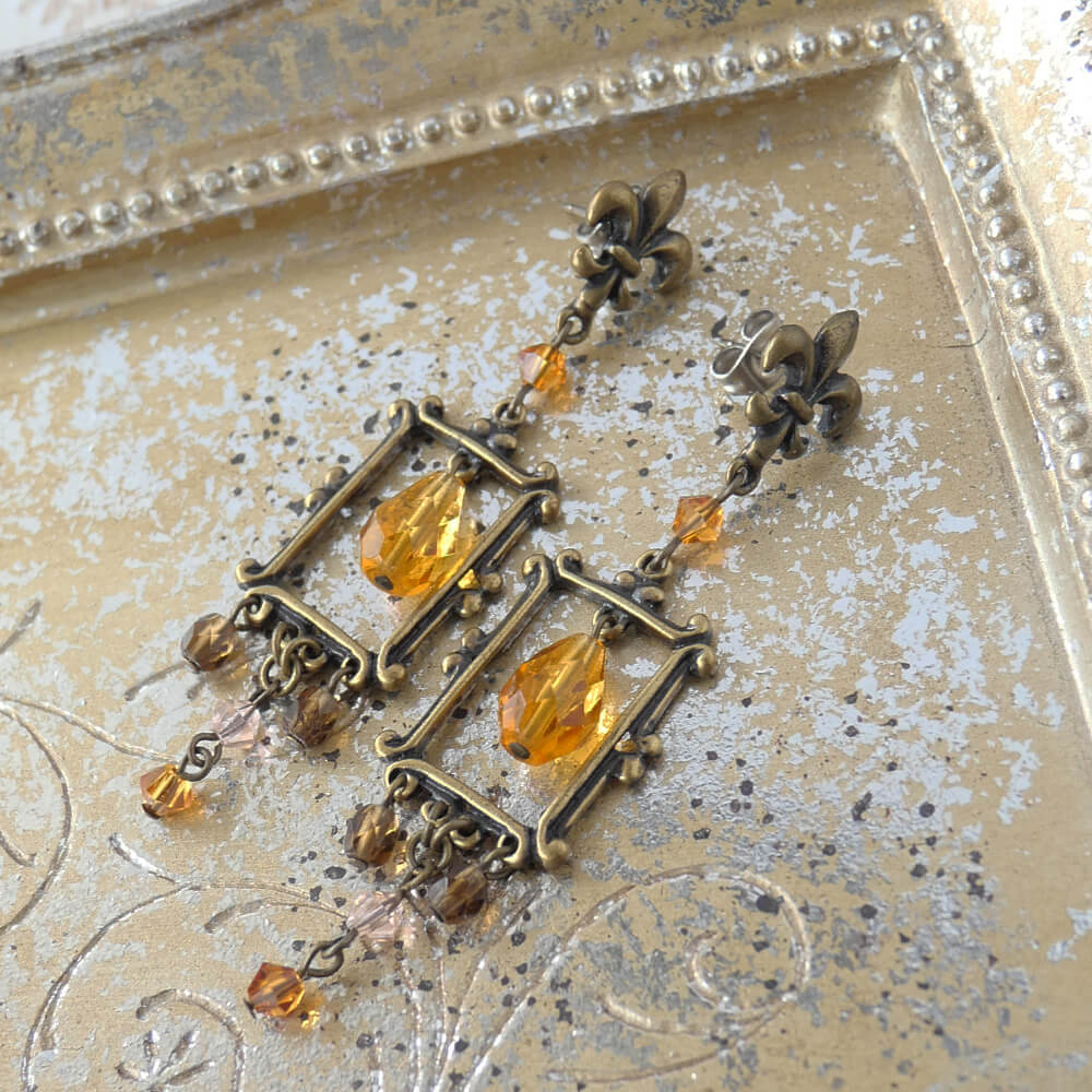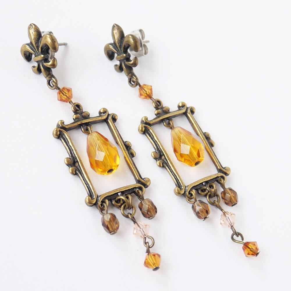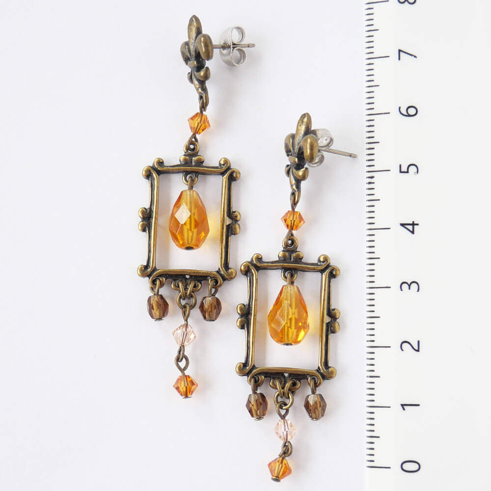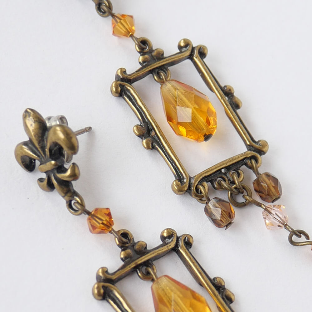 フレーム ピアス トパーズカラー チェコビーズ ゴスロリ 額縁