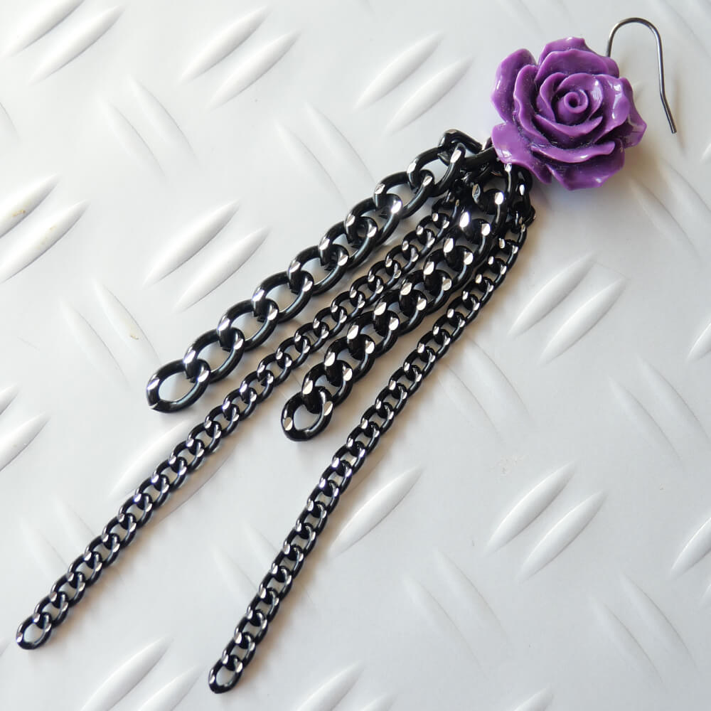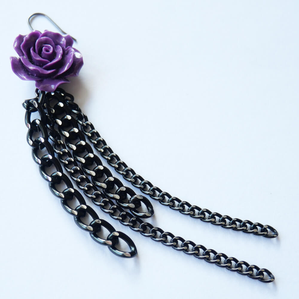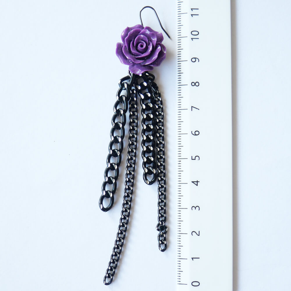 紫 薔薇 ロング ブラック チェーン ピアス(片耳タイプ)