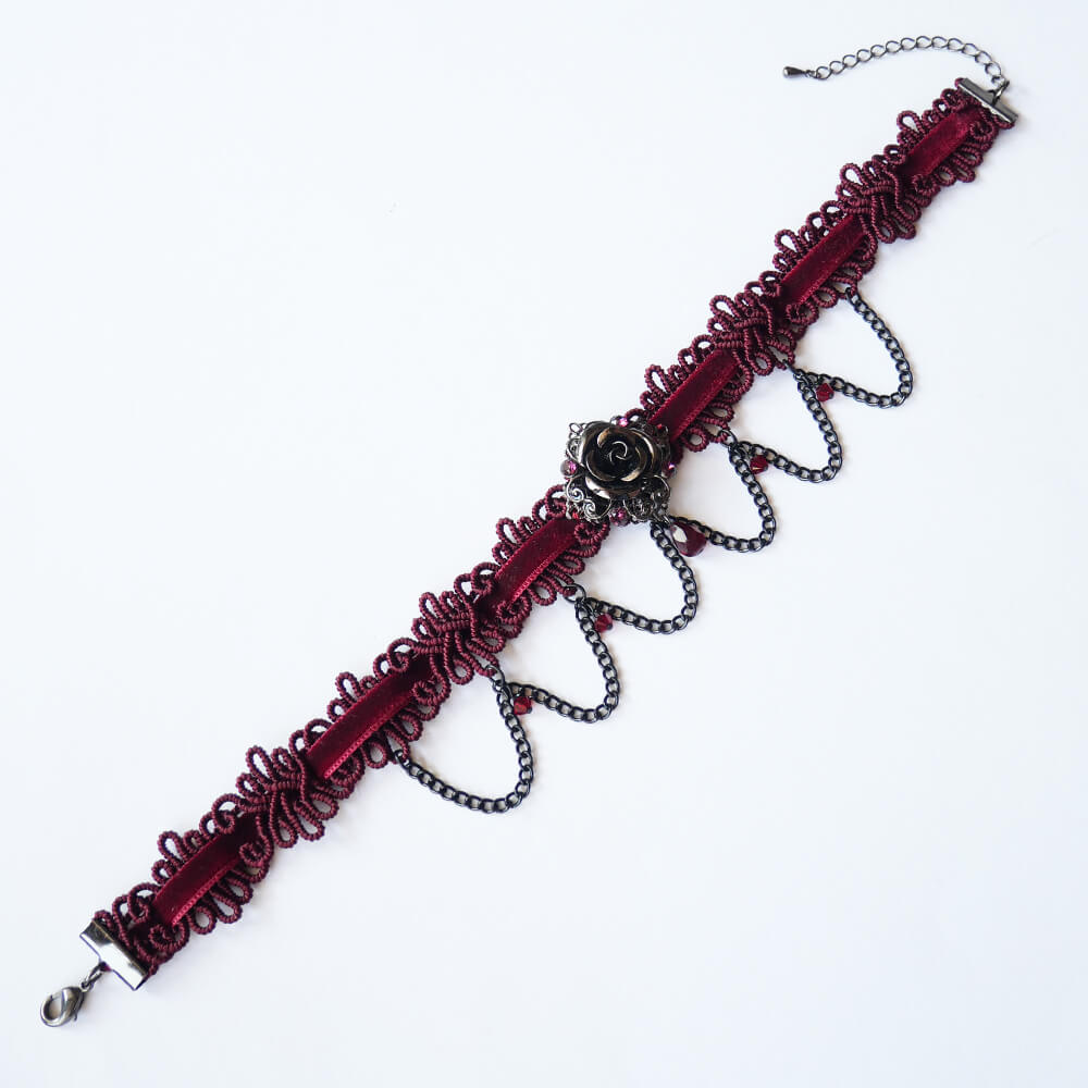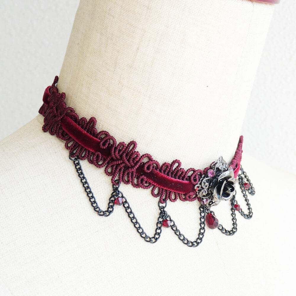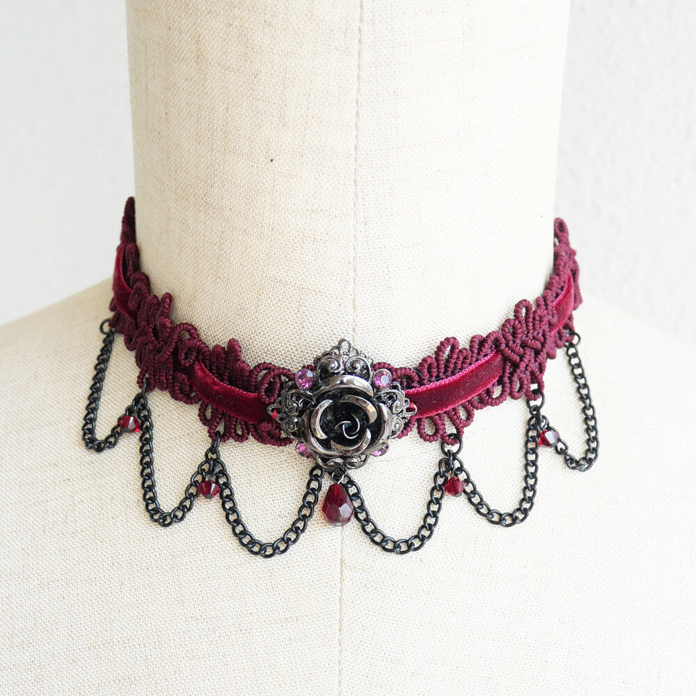 ゴシック 薔薇 チョーカー レッド ワインカラー ショートサイズ