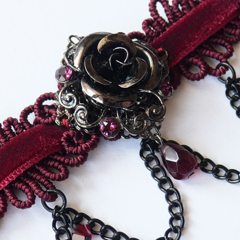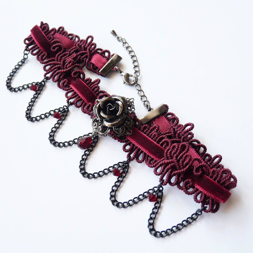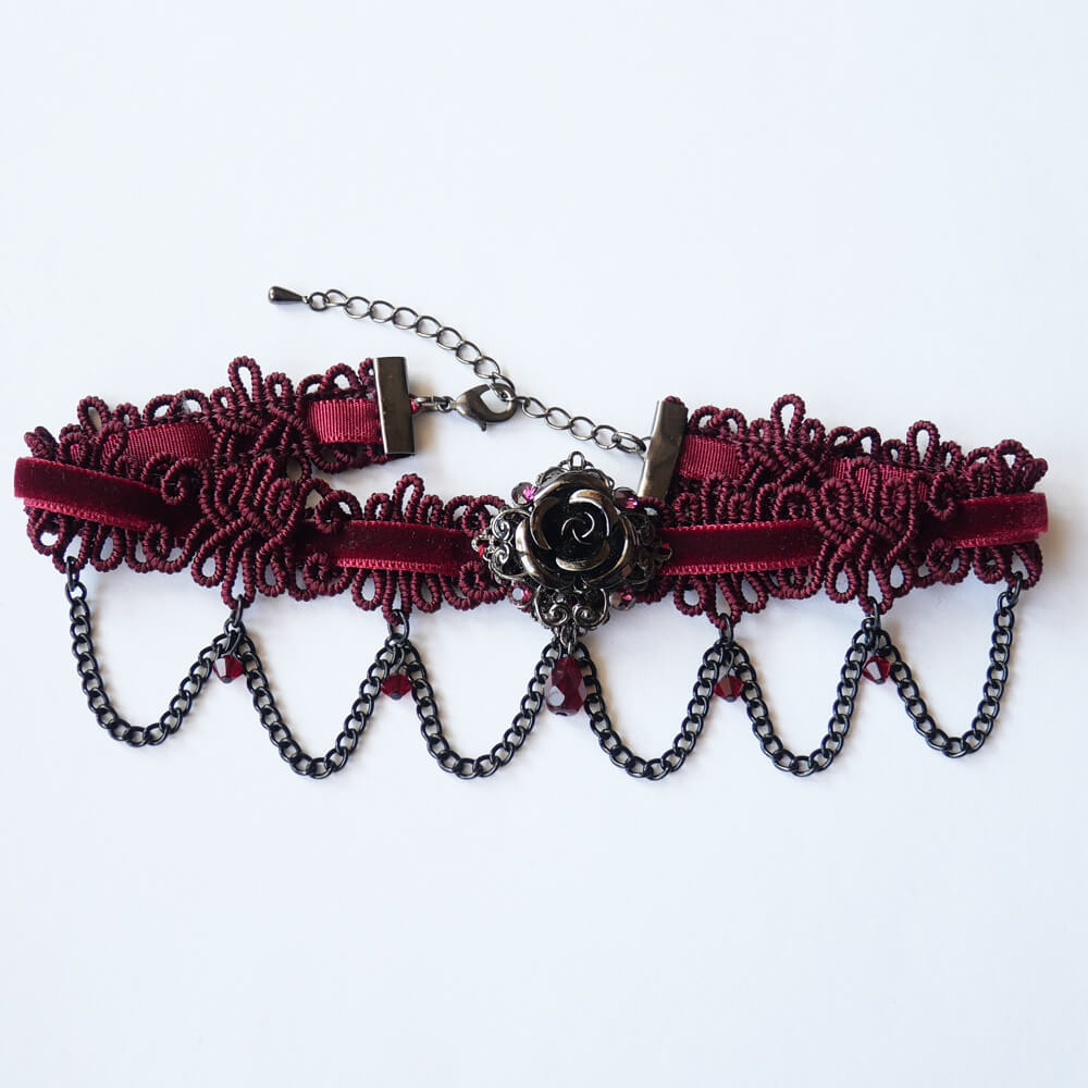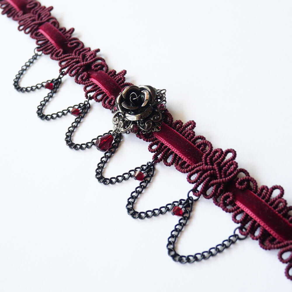 ゴシック 薔薇 チョーカー レッド ワインカラー ショートサイズ