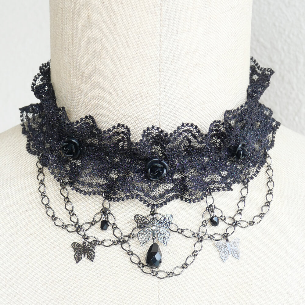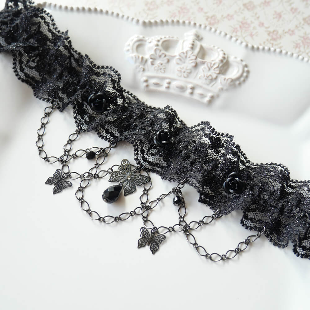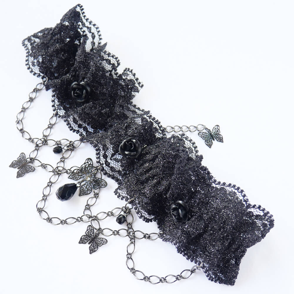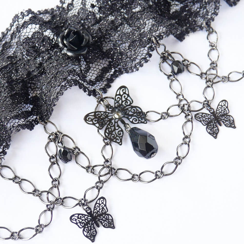 レースの下にはグラデーションのチェーンと3つの蝶パーツ