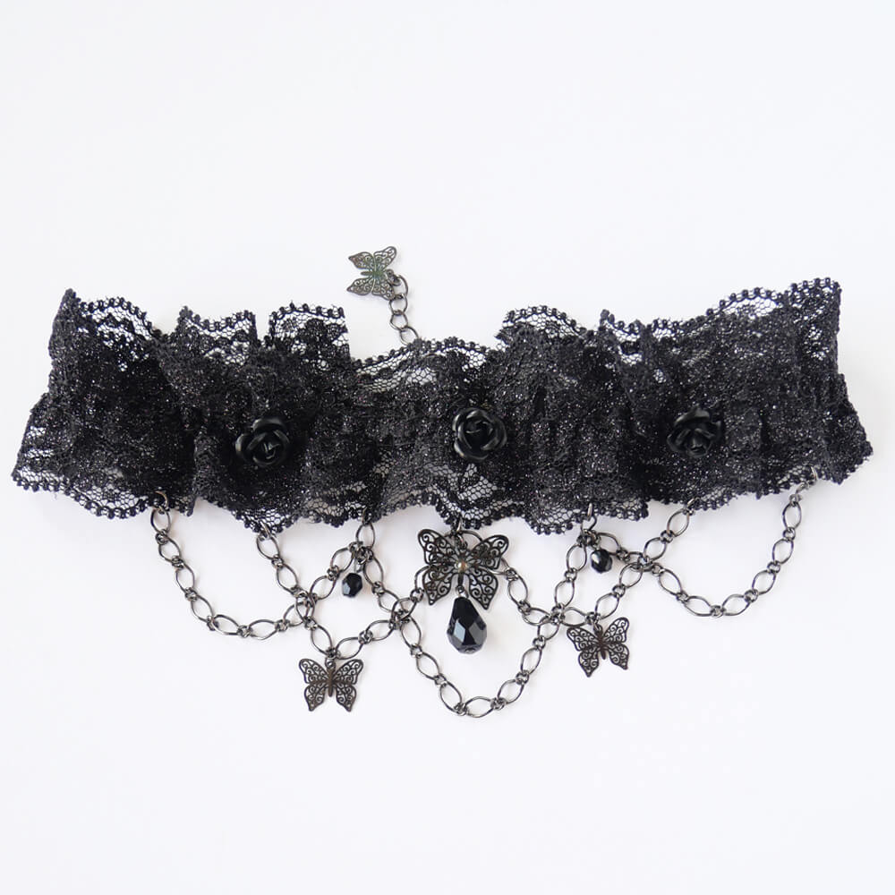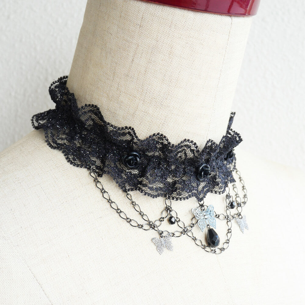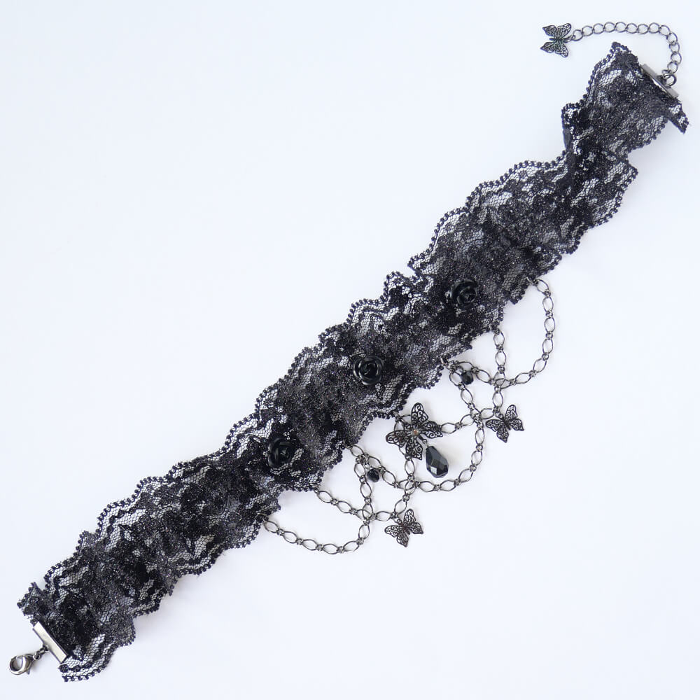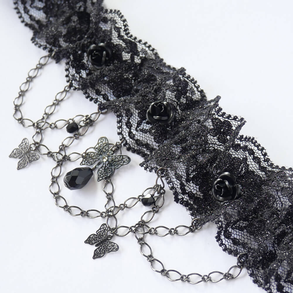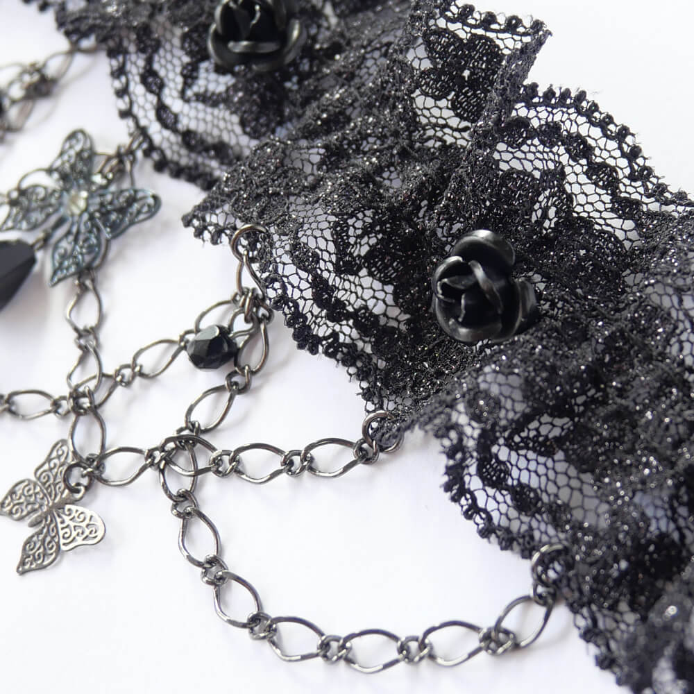 レースの下にはグラデーションのチェーンと3つの蝶パーツ