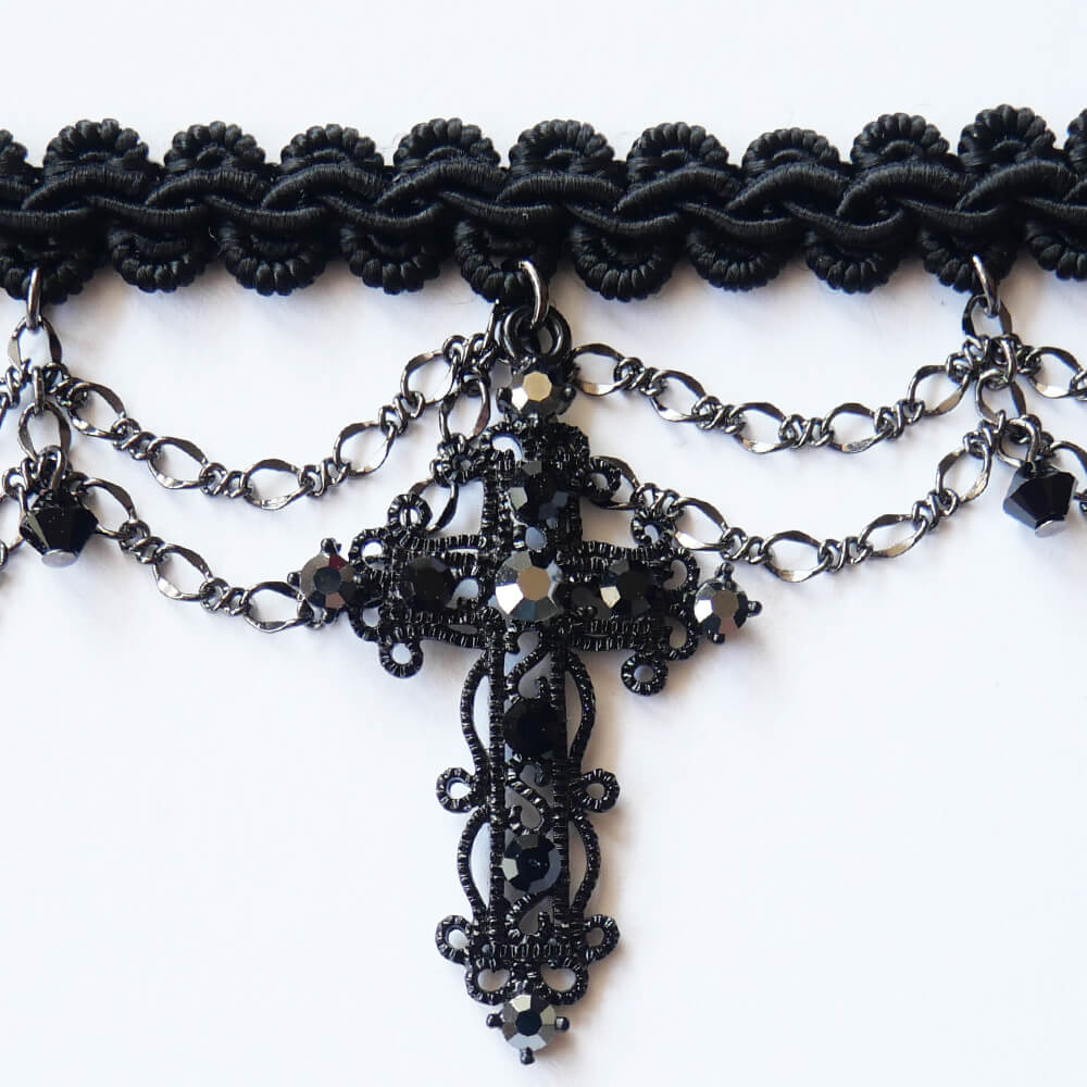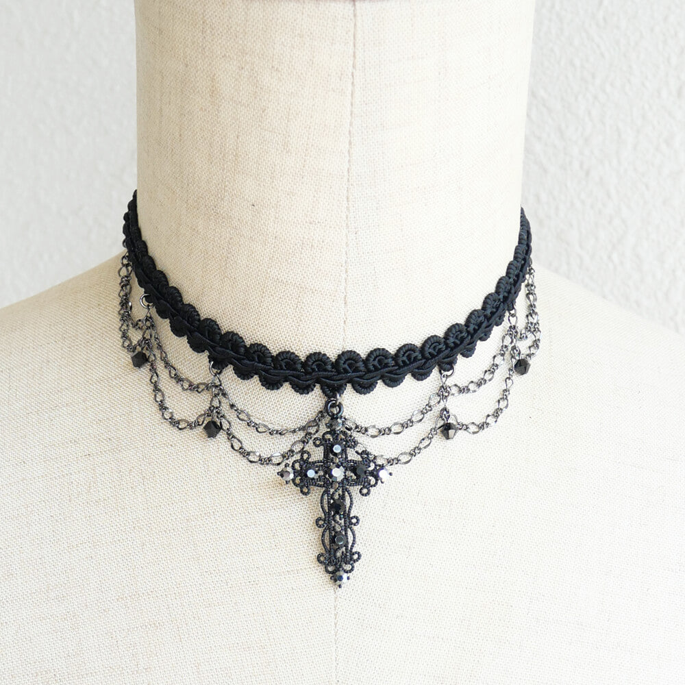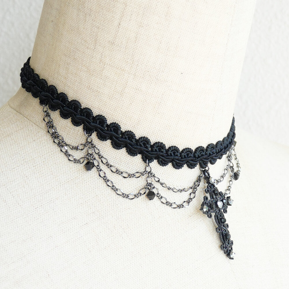 ゴシック ブラック チョーカー 十字架 ダブルチェーン