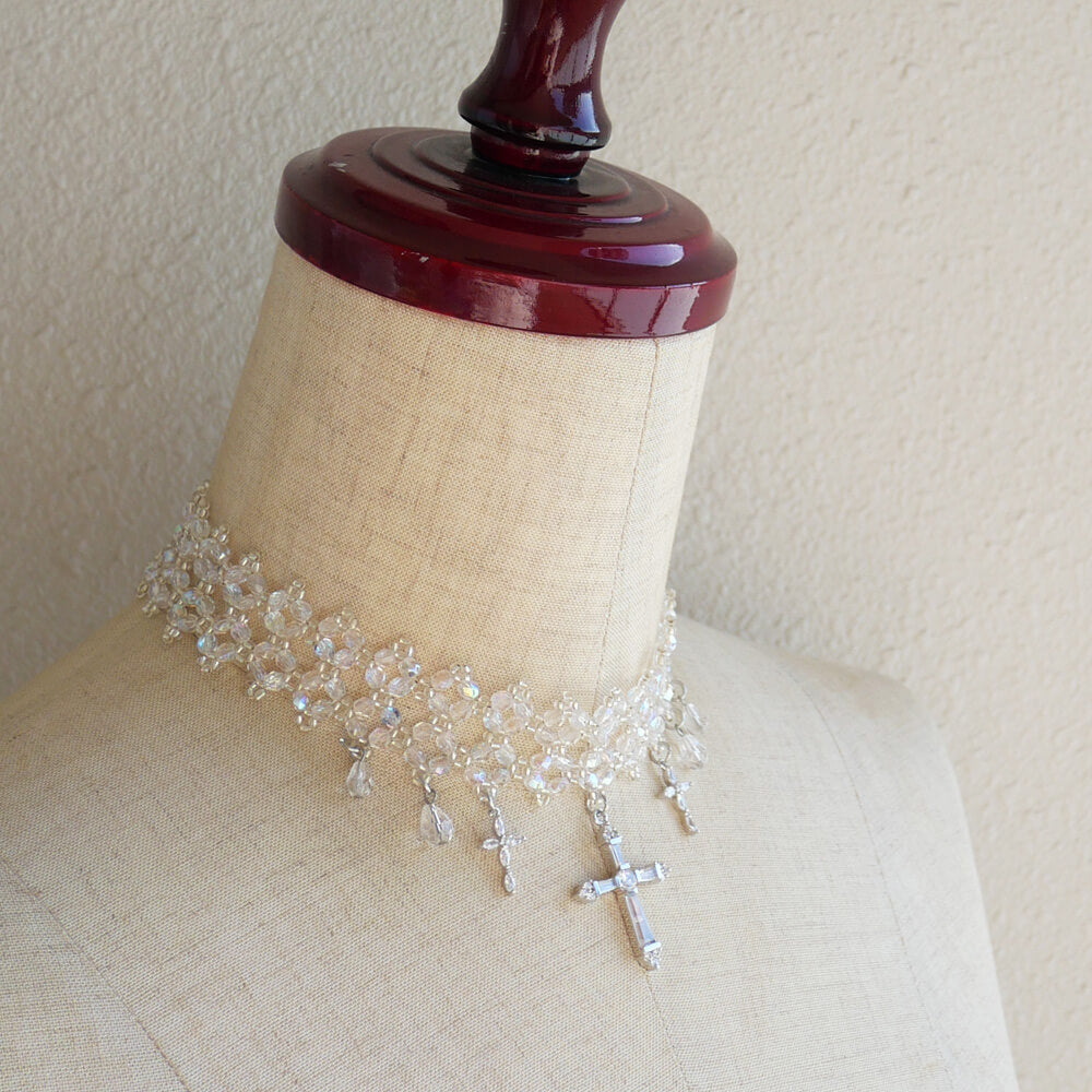 クリスマス 聖夜 十字架 キュービック クロス クリア ビーズチョーカー サンタ コスチューム