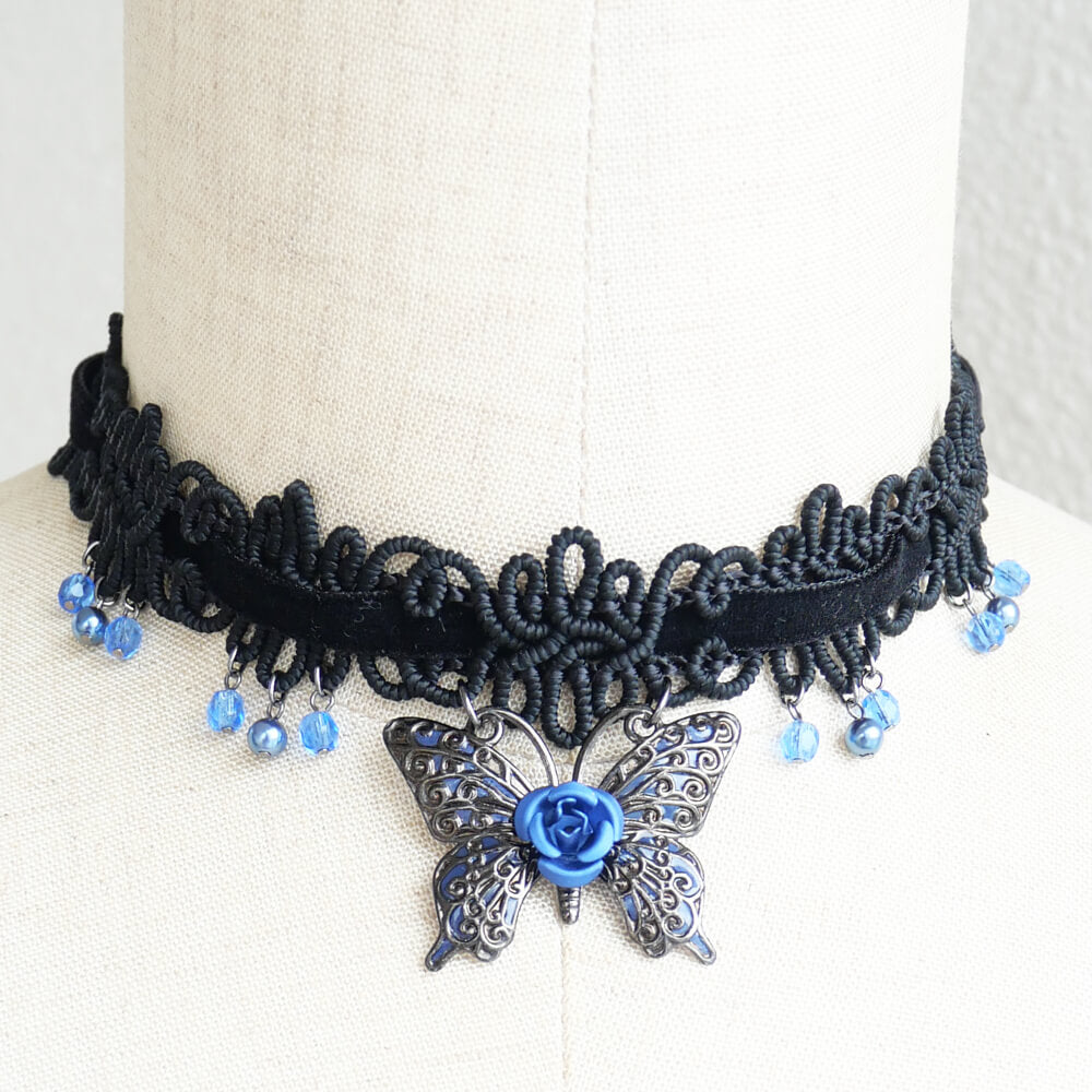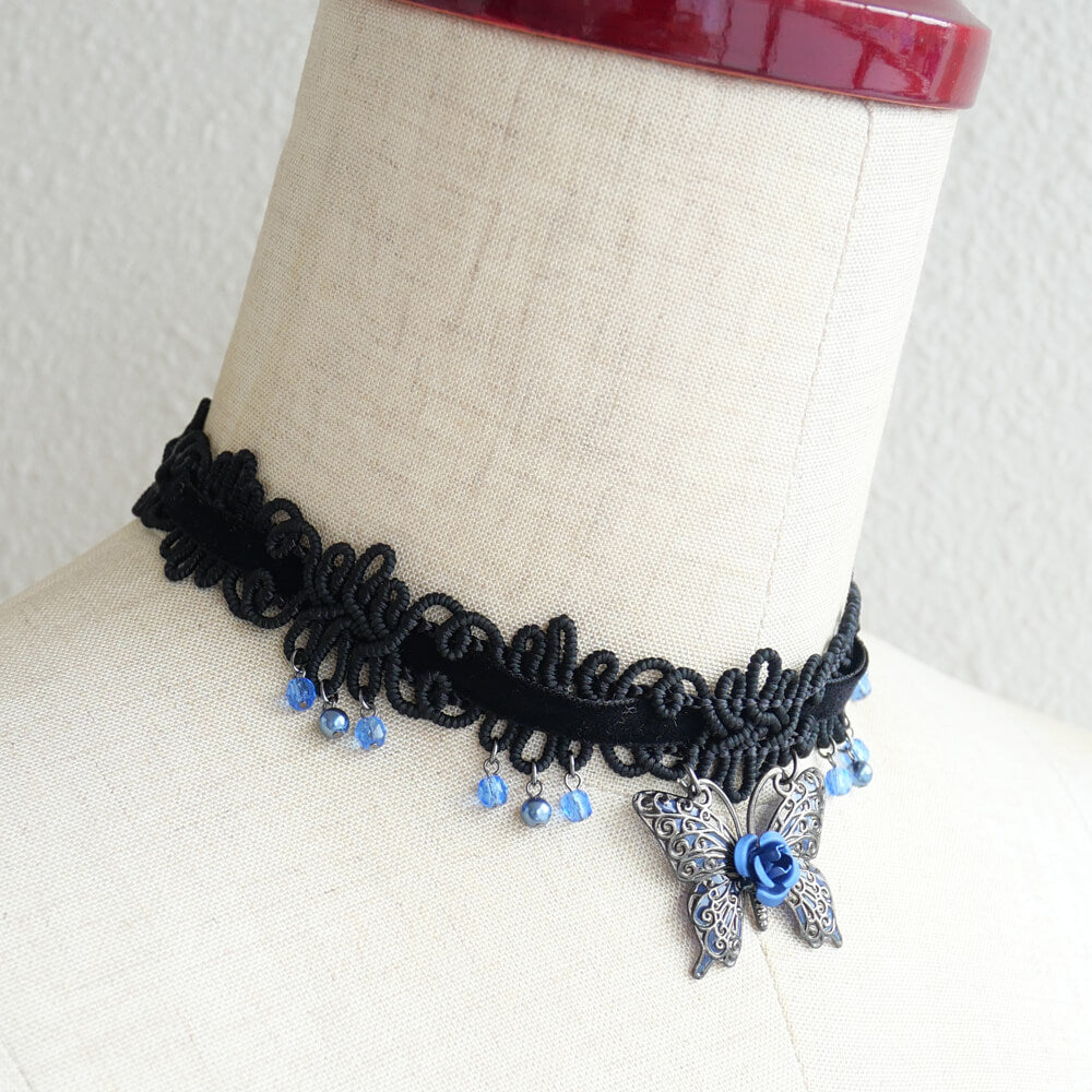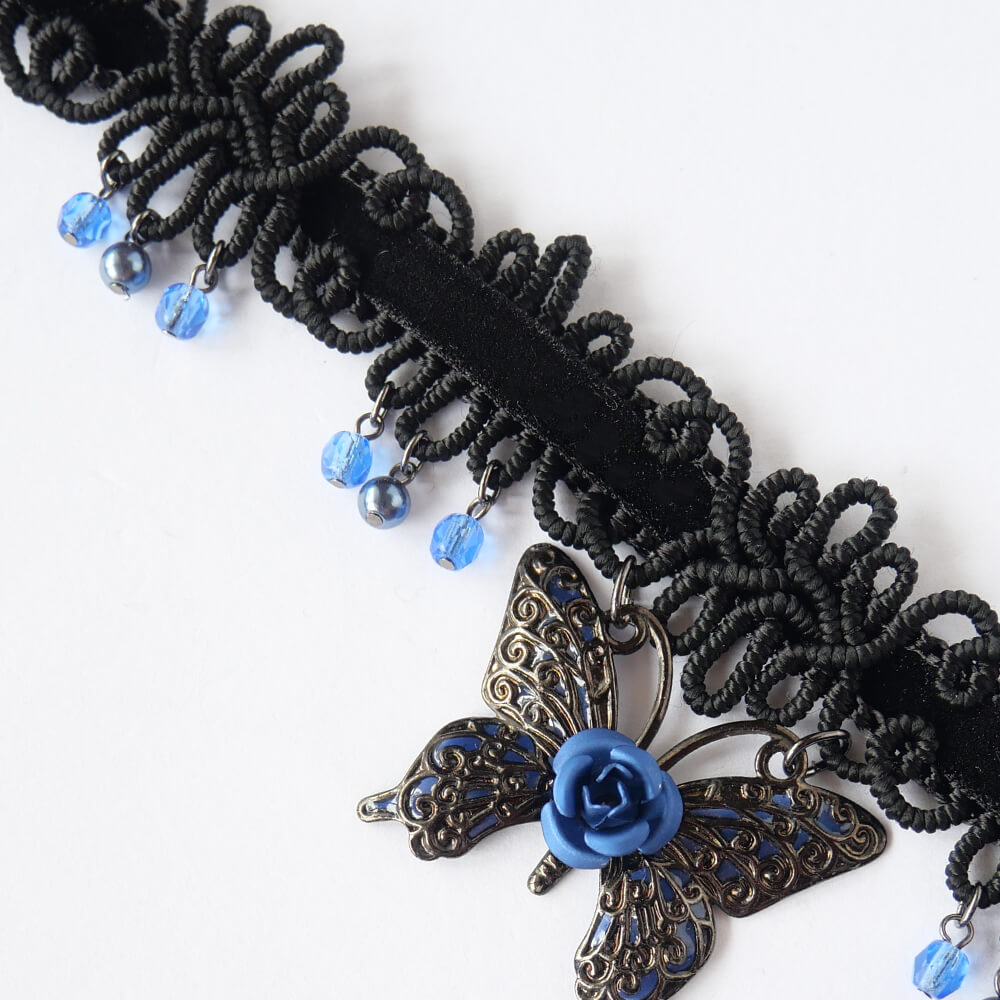 薔薇 蝶 ベルベット ブレード チョーカー ローズ ゴシック