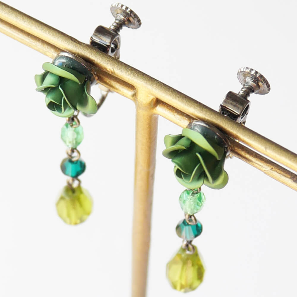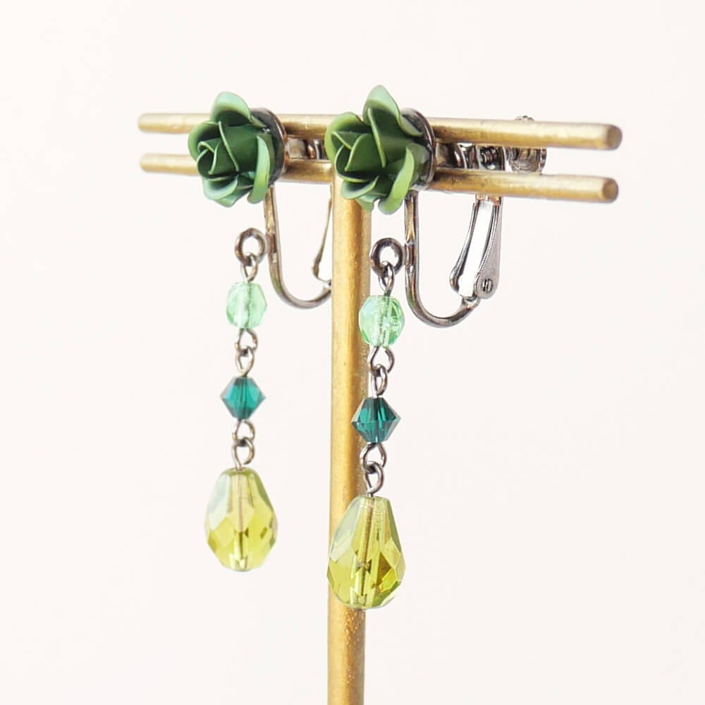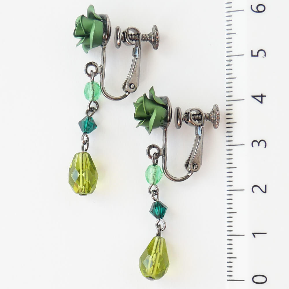 緑薔薇 グリーン ドロップ イヤリング