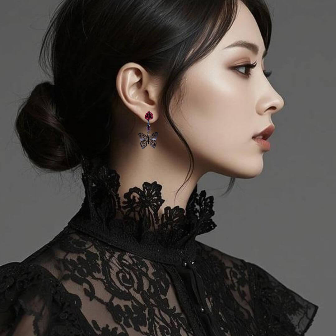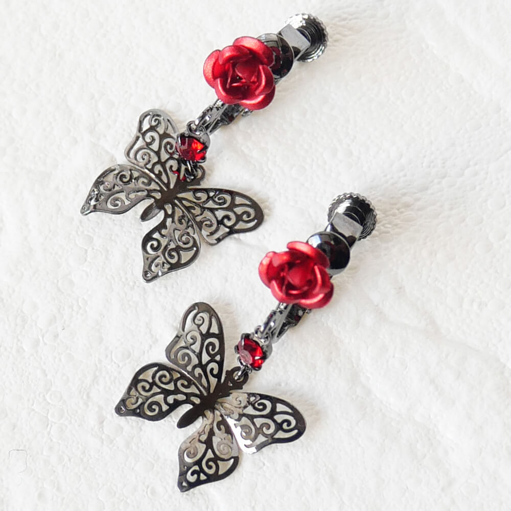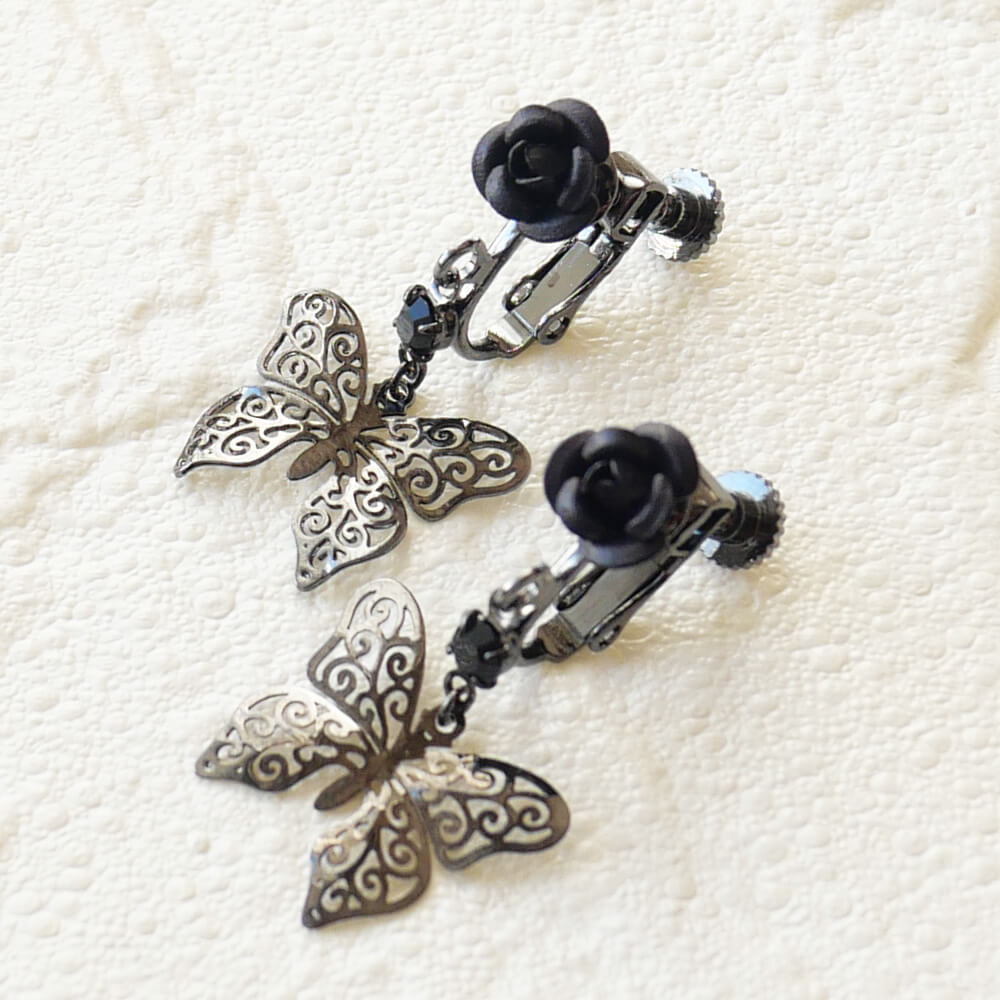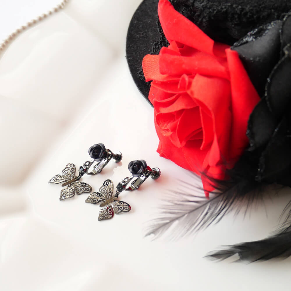 控えめゴスロリ イヤリング 薔薇 蝶 小さめ