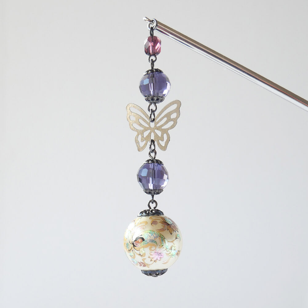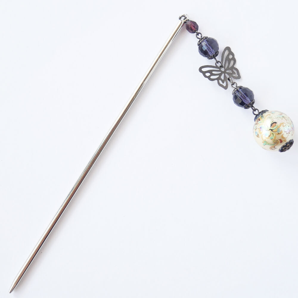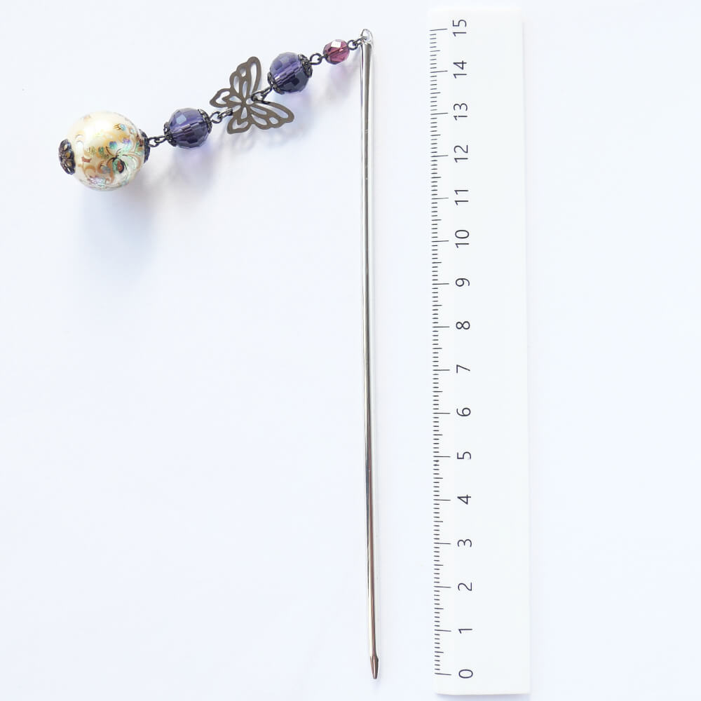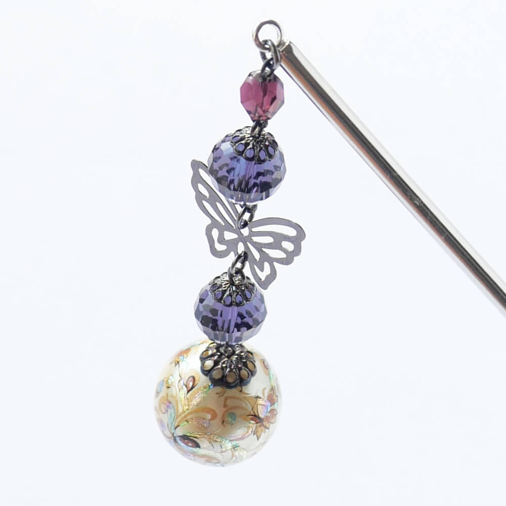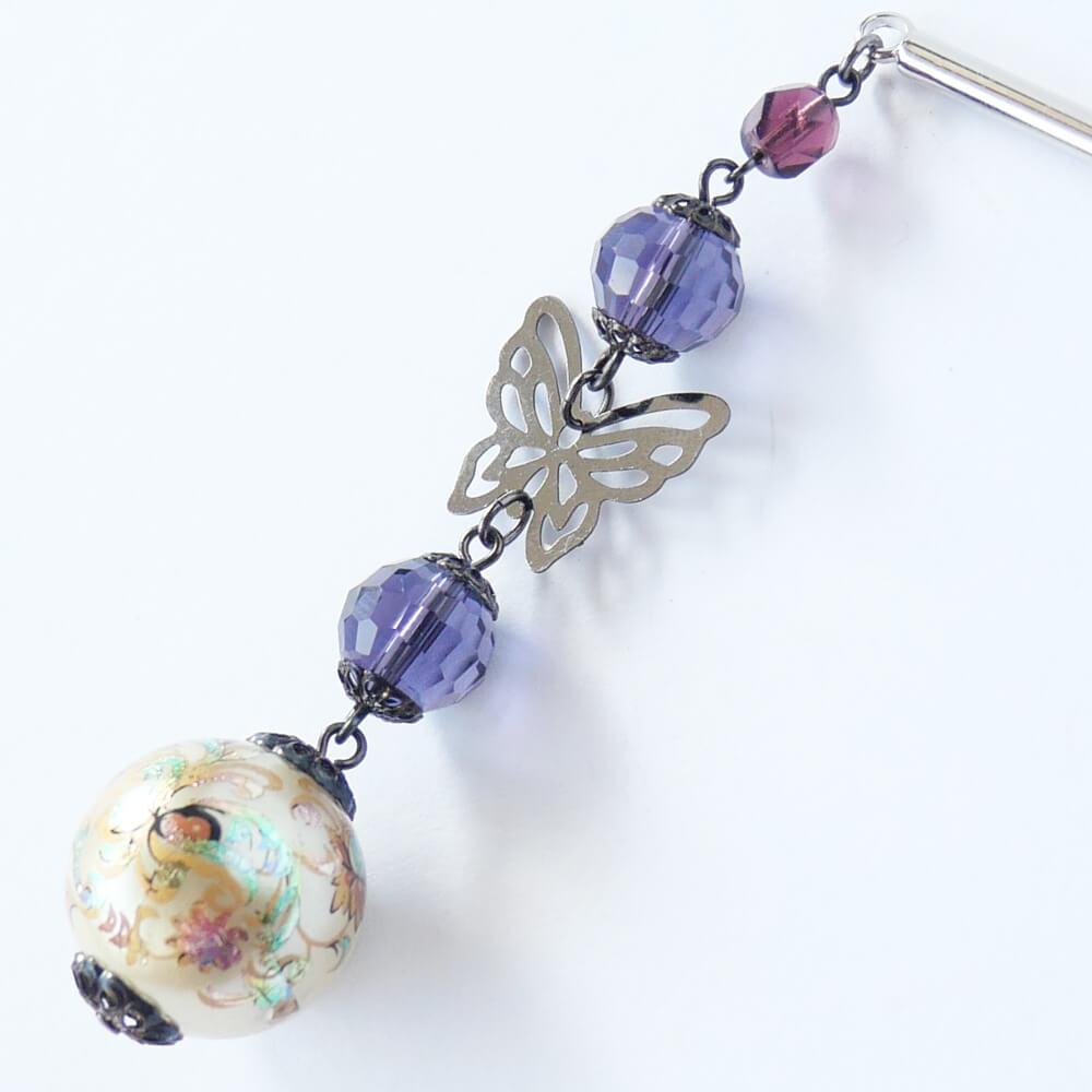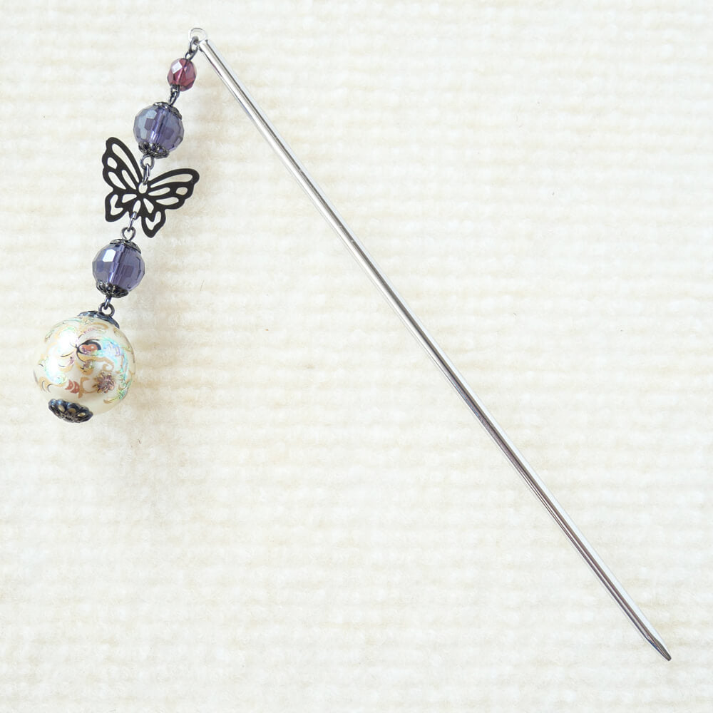転写玉 蝶 パール パープル ストーン 一本 かんざし