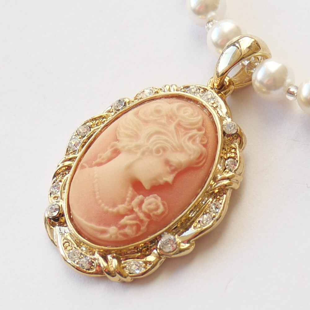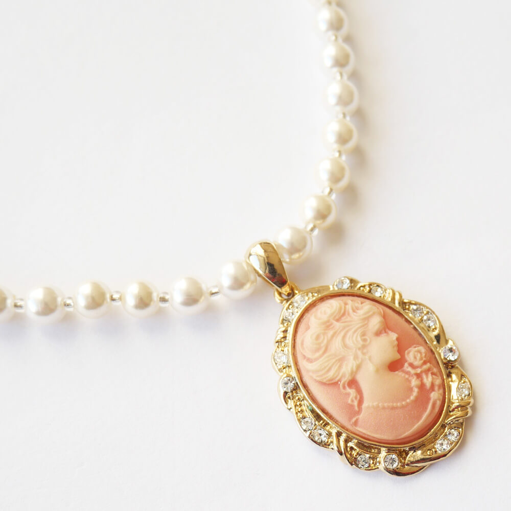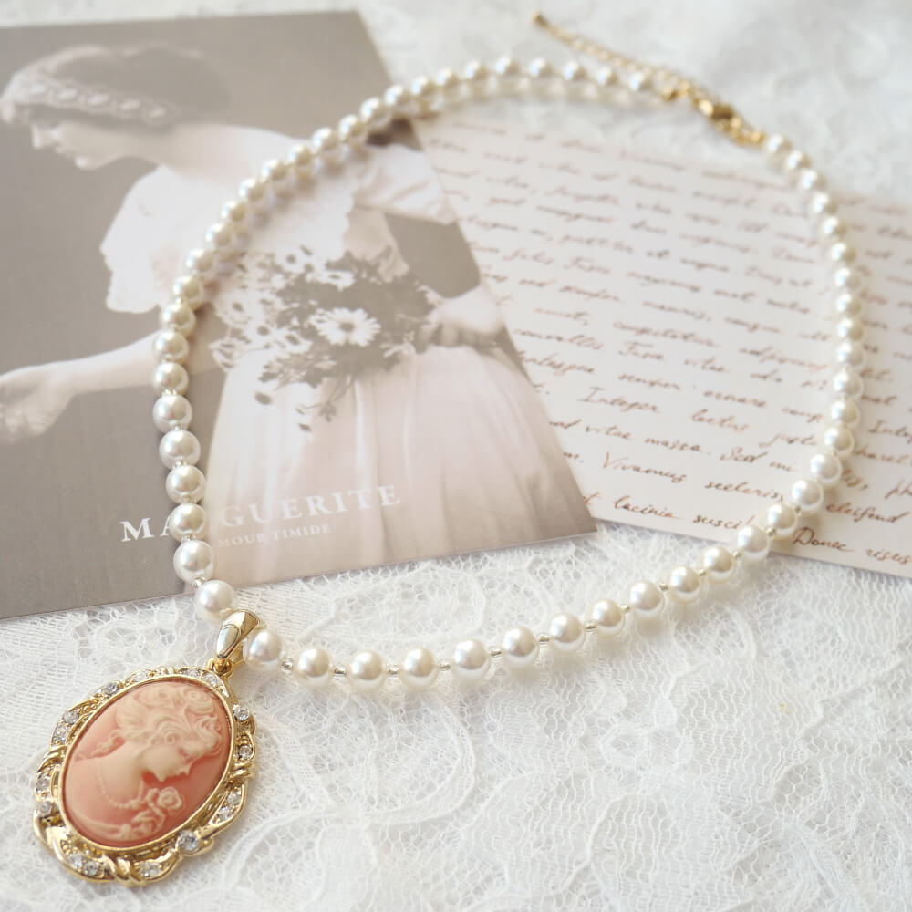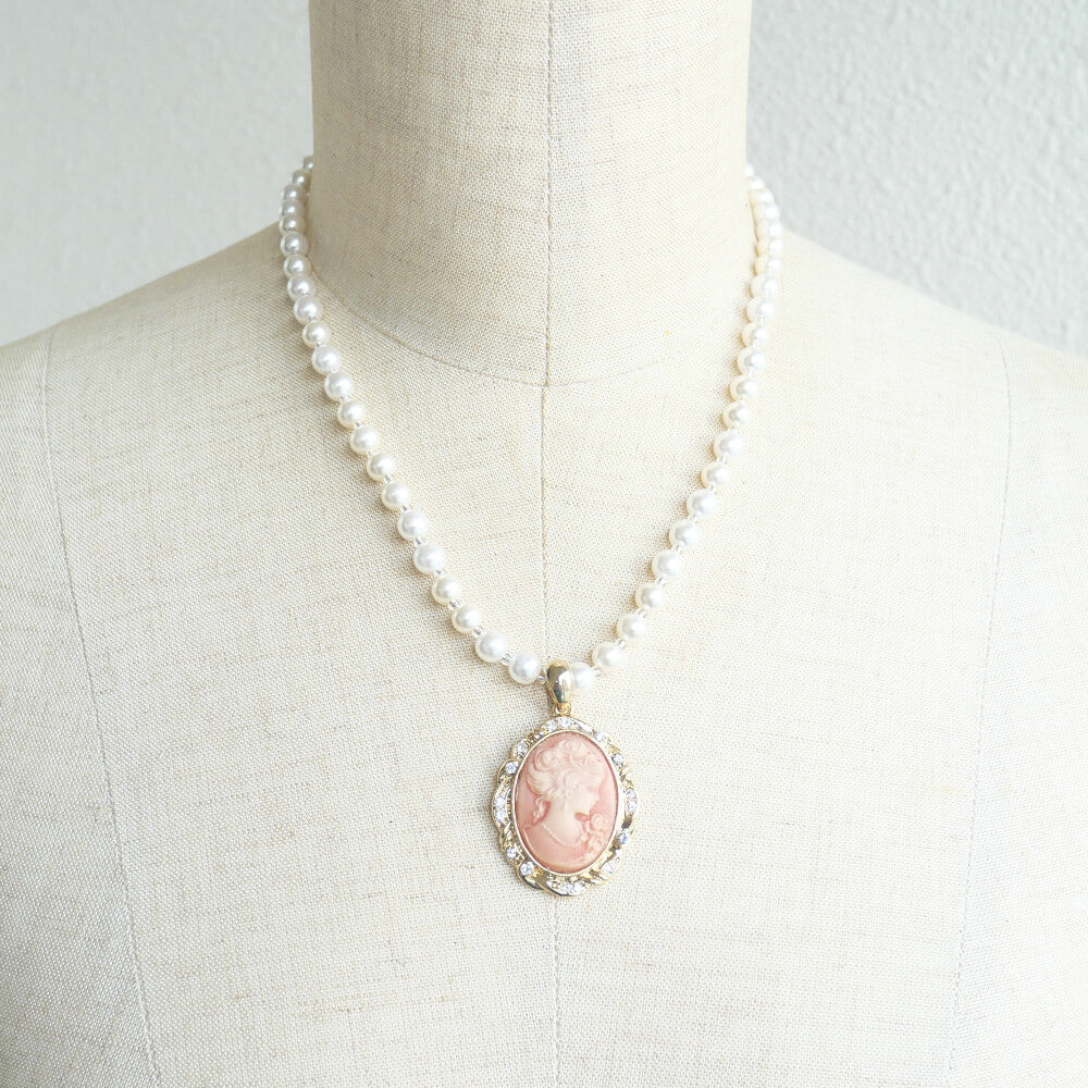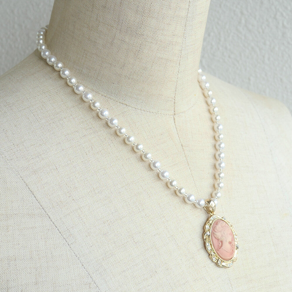 ホワイトパールとクリアビーズを通したハンドメイドのネックレス