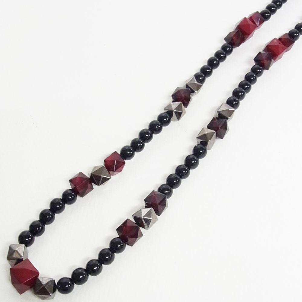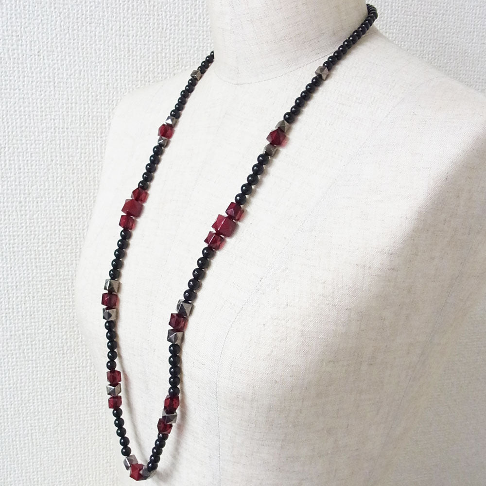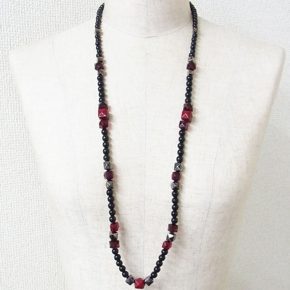黒 玉 ブラック ロング ネックレス レッド スタッズ