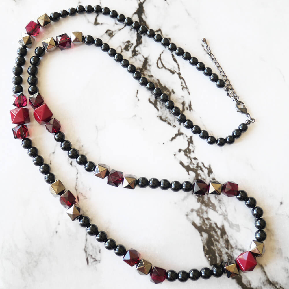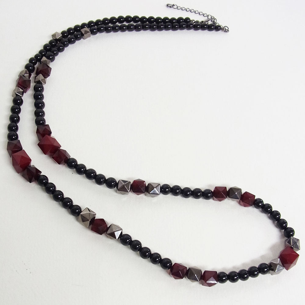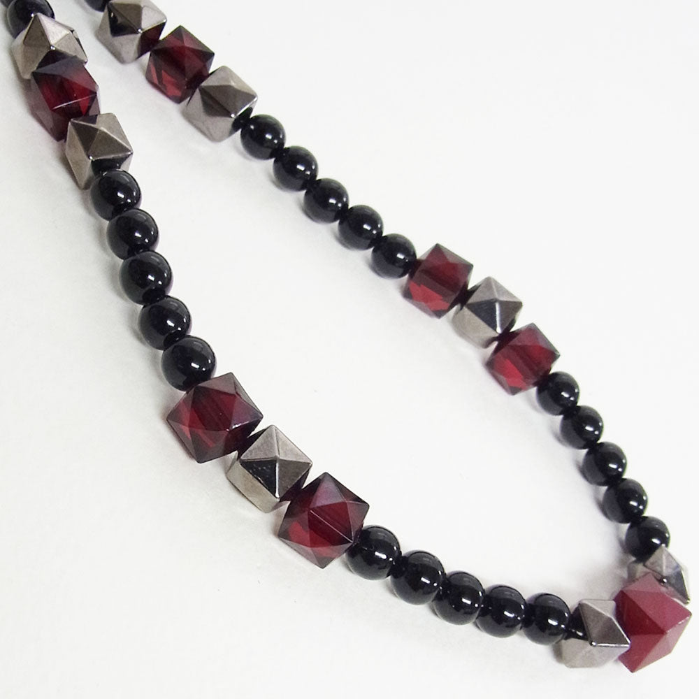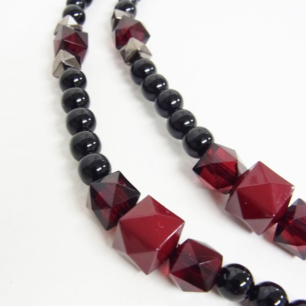 黒 玉 ブラック ロング ネックレス レッド スタッズ