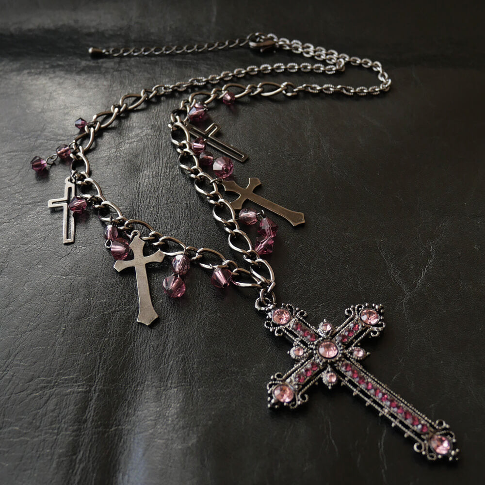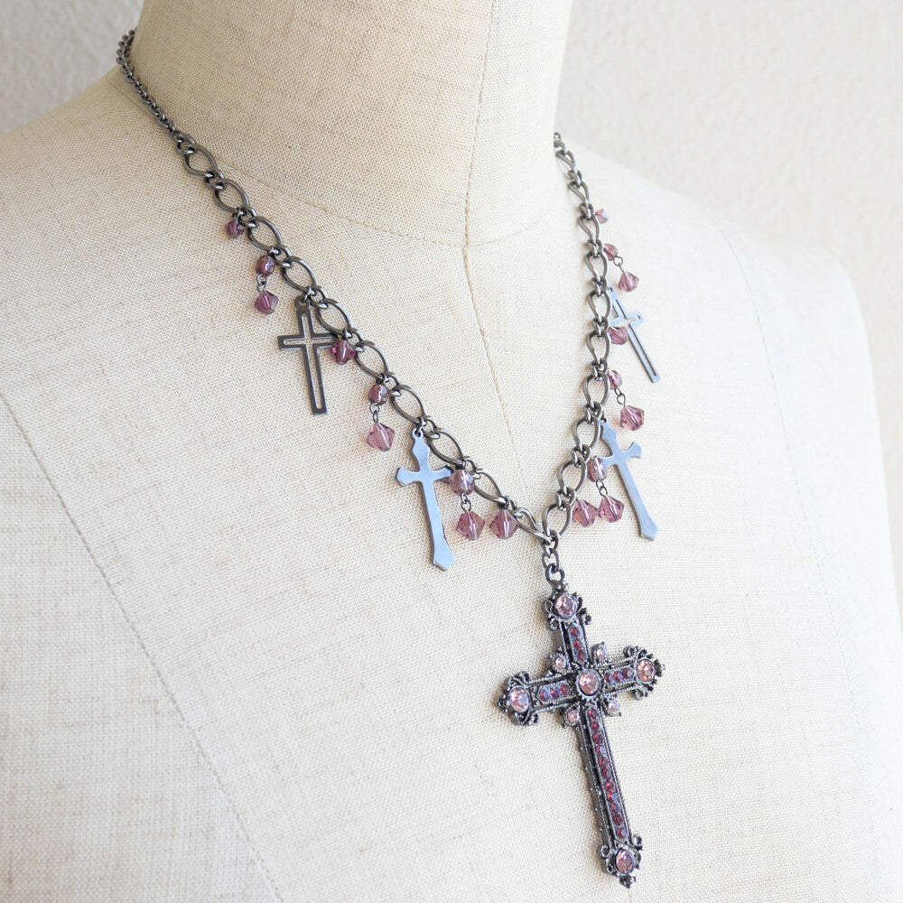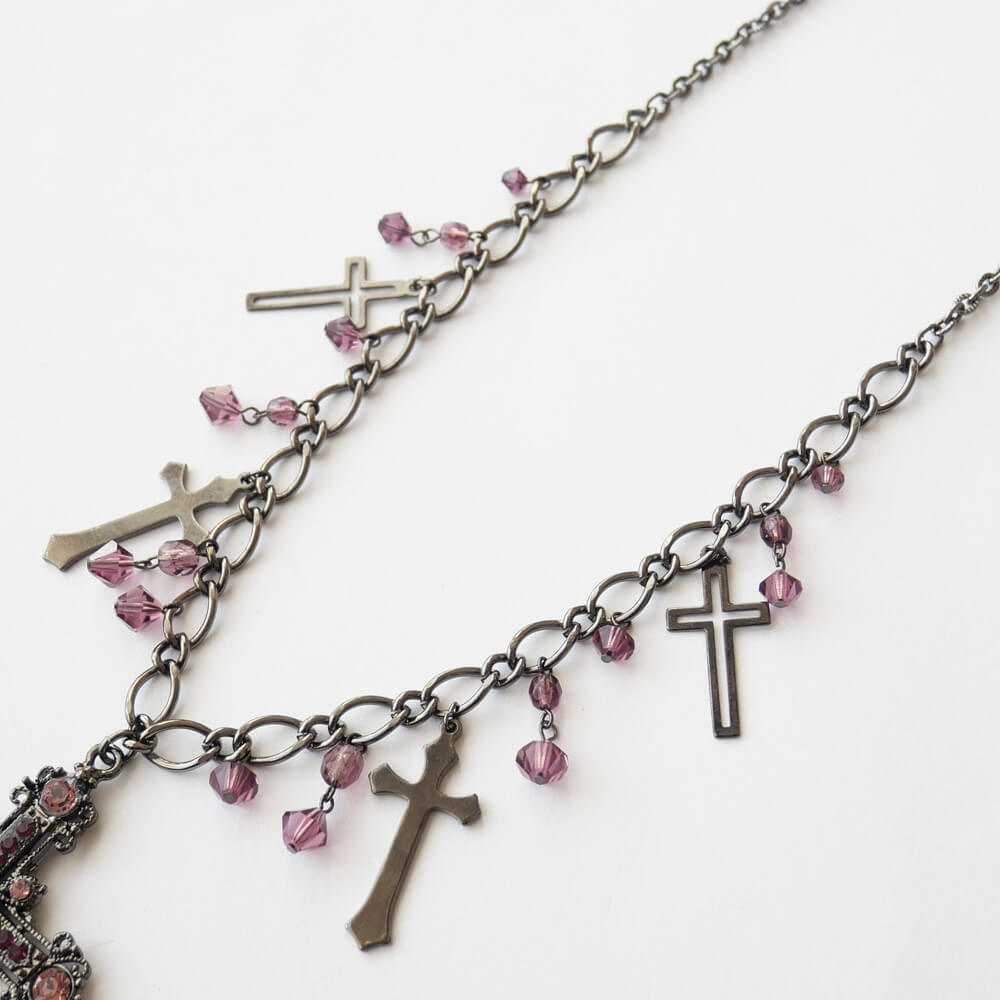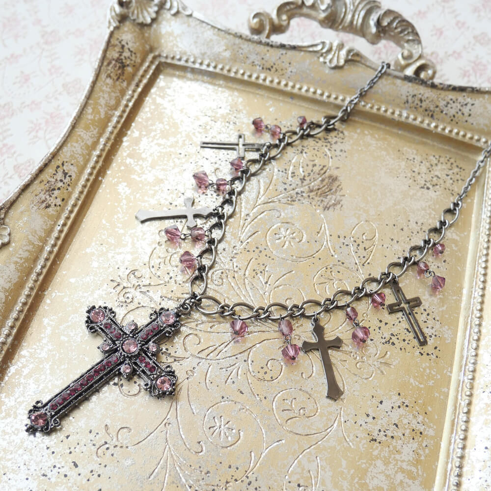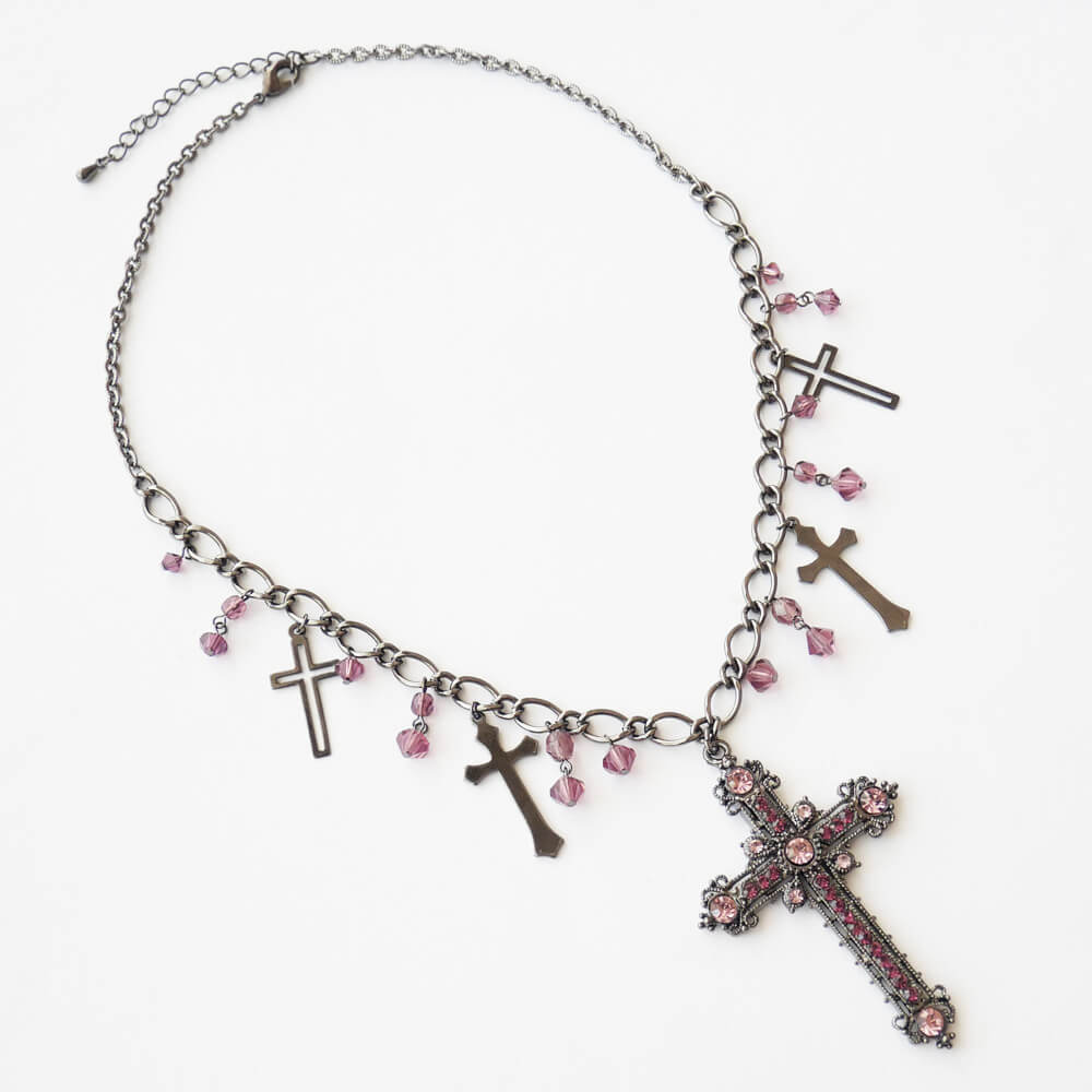 十字架 5 クロス ガンメタ ショート ネックレス