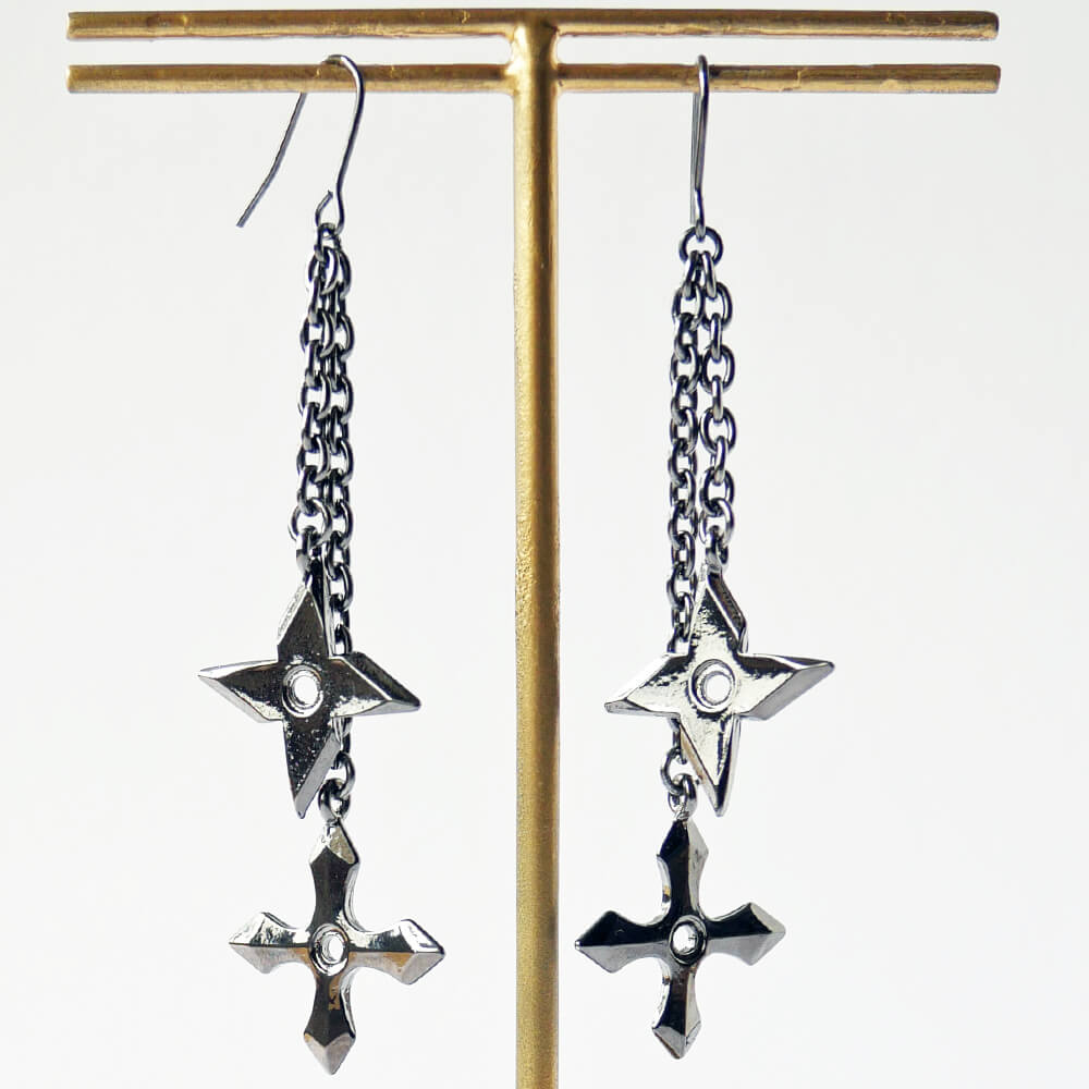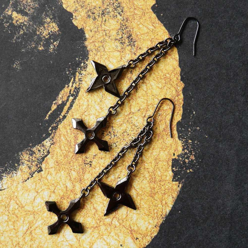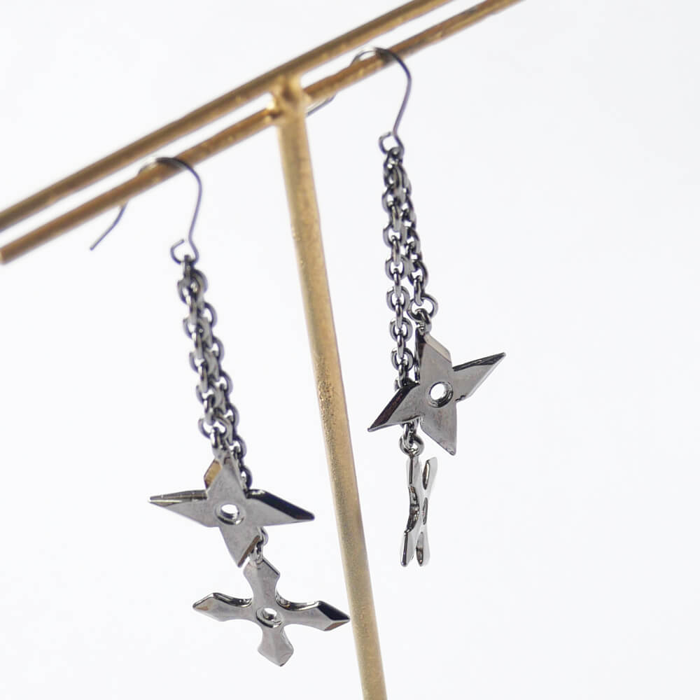 手裏剣 二種 鎖 ピアス 黒鉄 ガンメタ