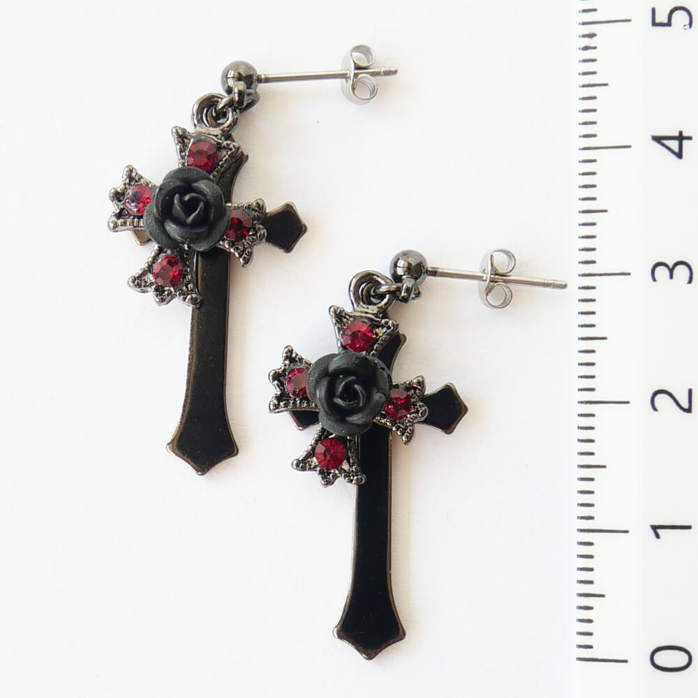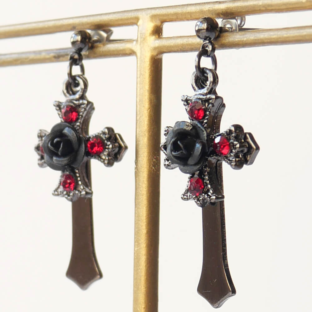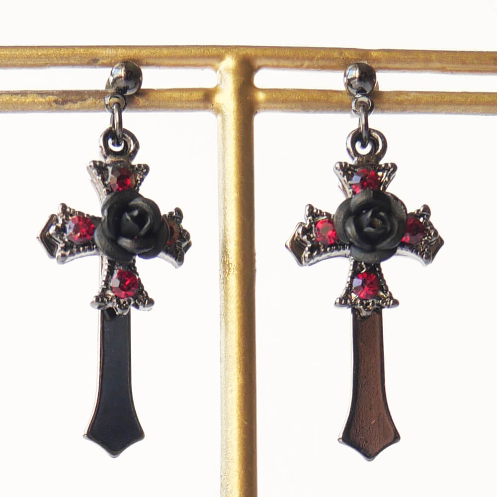 ピアス 十字架 黒薔薇 ブラックローズ クロス