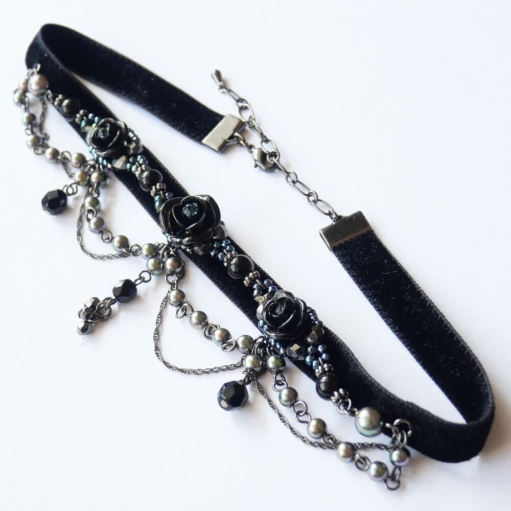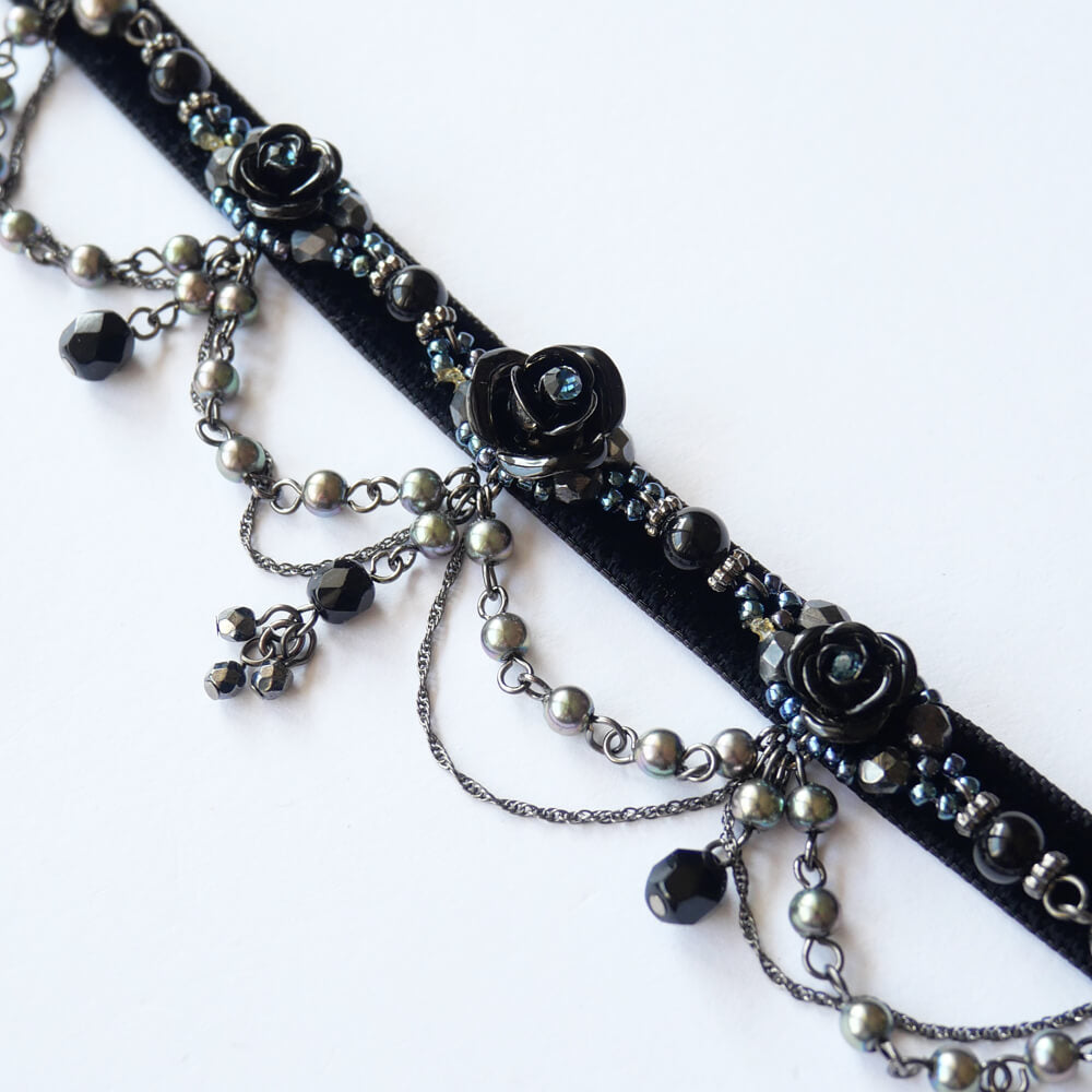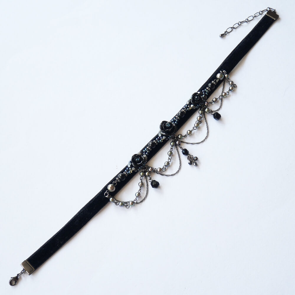 薔薇 ビーズ パール ゴシック ベルベット チョーカー ブラック
