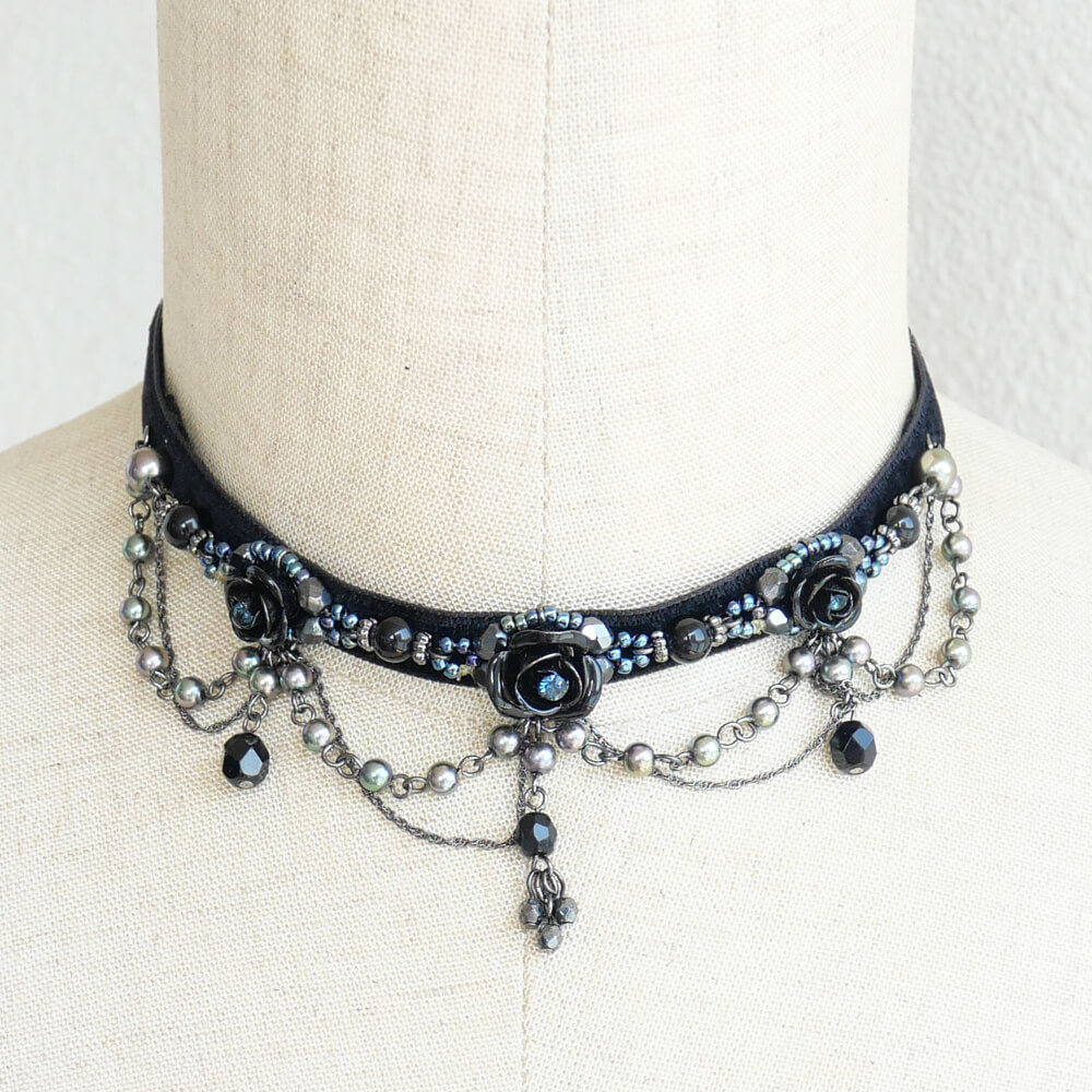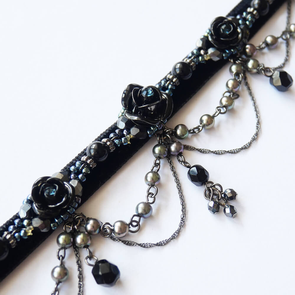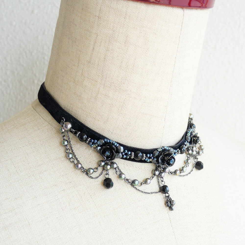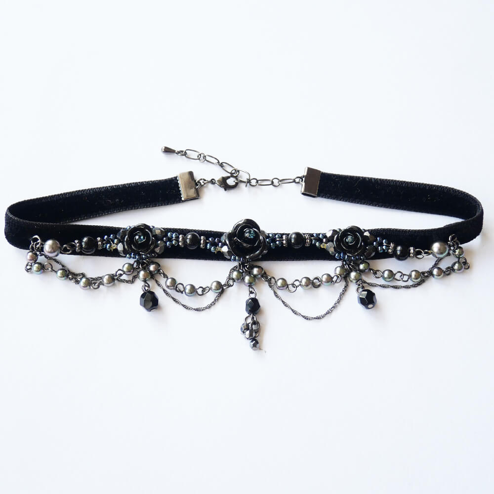 薔薇 ビーズ パール ゴシック ベルベット チョーカー ブラック