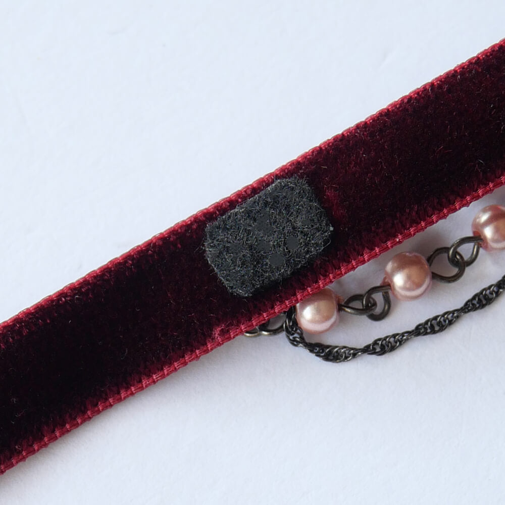 ワインカラーのベルベットに縫製したハンドメイドチョーカー