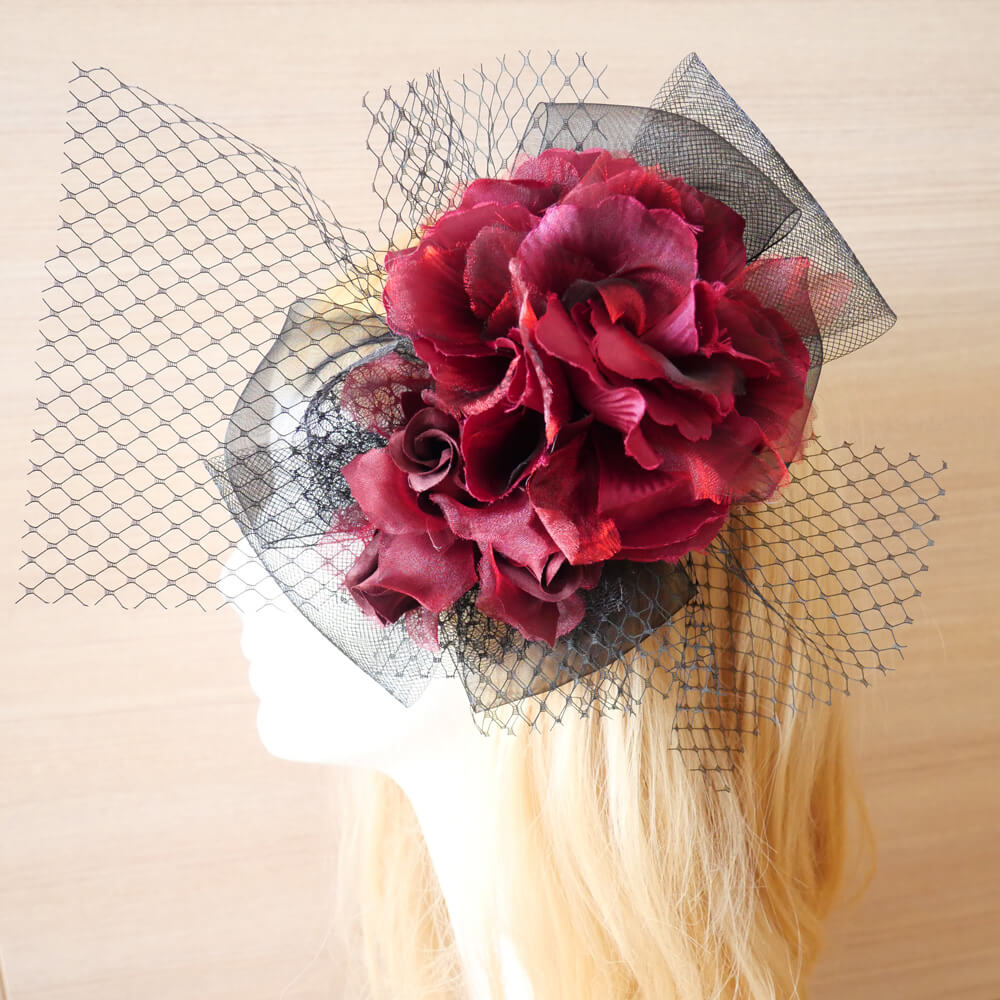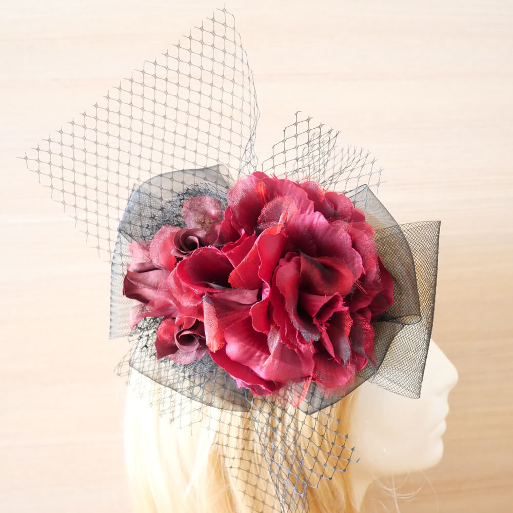 コサージュ ワイン レッド フラワー ブーケ ヘッドアクセサリー